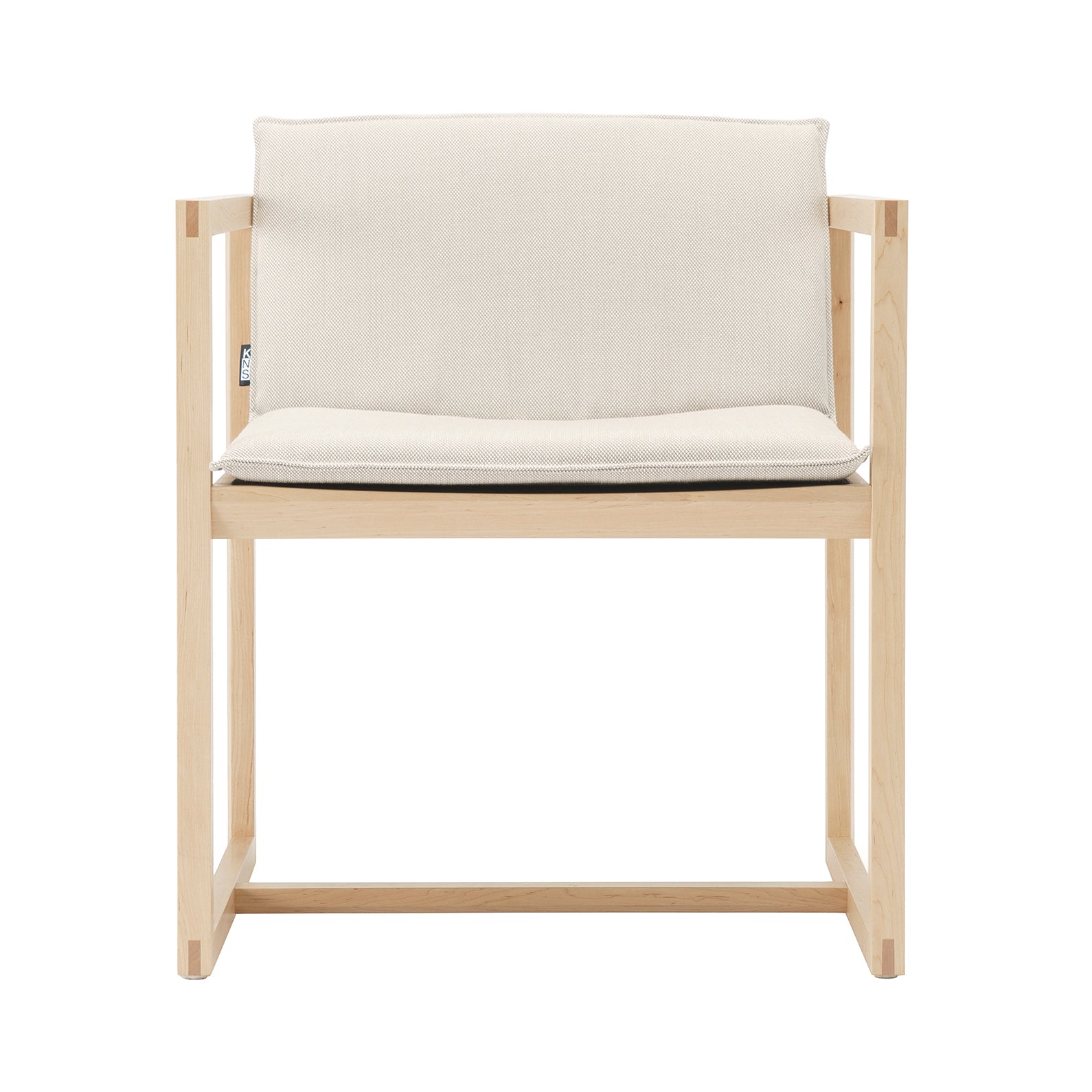 Takahiko Fujimori's graphic chair features an angled, padded backrest set at a slightly lower position than a standard chair, allowing for relaxed, yet naturally spine-straightening repose. Another grace note is is the geometric frame, devised from a succession of squared-off shapes and assembled using the traditional Japanese triple-tenon woodwork technique known as tomegata sanmai tsugi. Once again, Karimoku New Standard's lofty history of woodworking technique is as impressive as its ongoing commitment to ecologically sustainable timber sourcing.