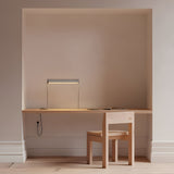 The Ipoli 11 Long Table Lamp is built with a linear LED head that swivels up to 330°, allowing precise control of light direction. A touch-sensitive dimmer at the end of the head enables easy on/off control, smooth brightness adjustment, and memory of the last setting used. The LED offers a warm glow at either 2200K or 2700K. Its structure includes a slender aluminum base and a frosted opal acrylic lens that diffuses light gently. Available in tumbled aluminum, poppy red, black, and beige finishes, the lamp comes in both portable (softwire) and fixed (hardwire) versions.
