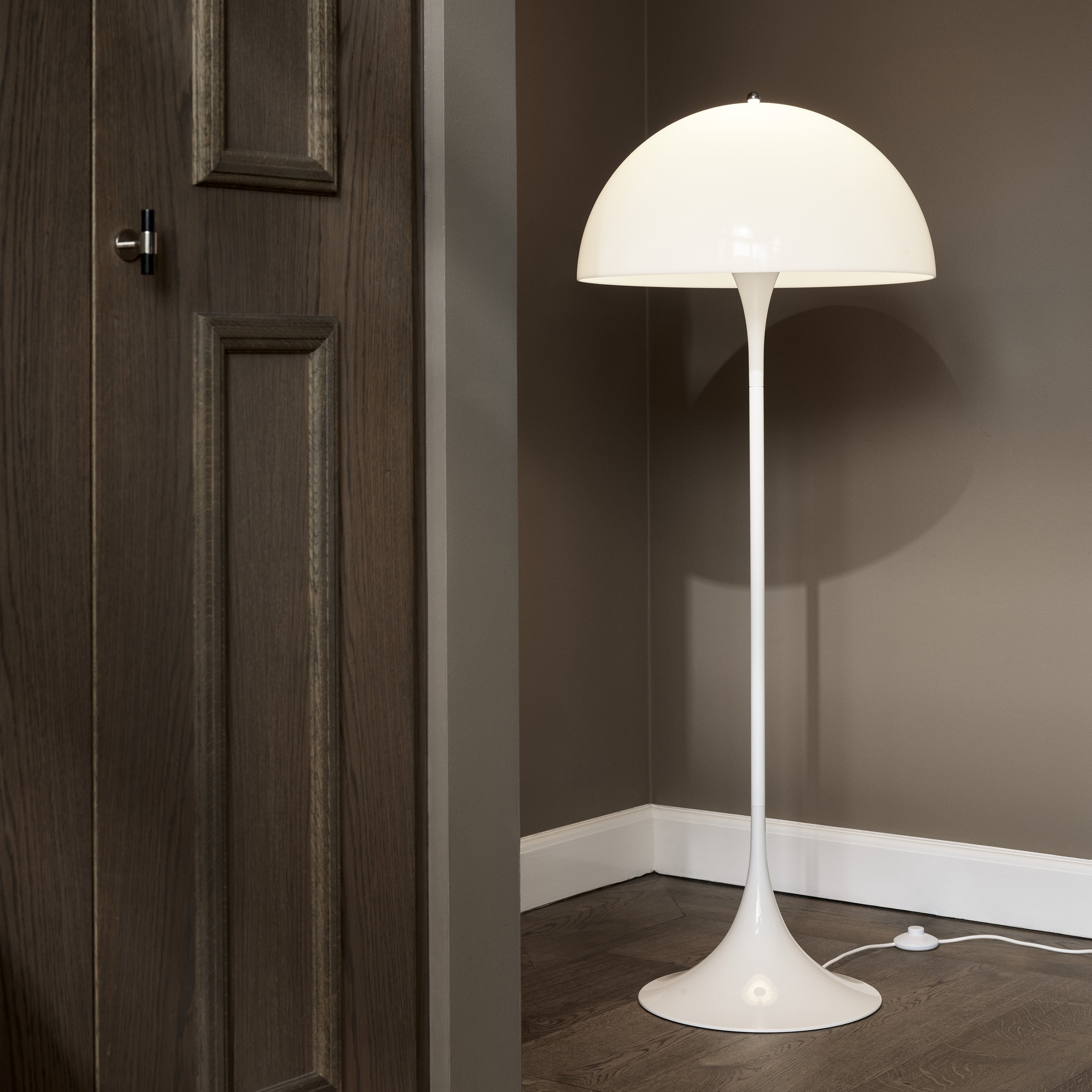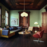 Designed in 1971 by Verner Panton and remaining one of the Modernist maestro’s most enduring designs, Panthella Floor Lamp wows with its instantly recognizable, highly sculptural silhouette while also providing softly radiant illumination. With an organic shape typical of a Verner Panton design, both the tulip base and hemispherical shade serve as a light reflector, ensuring that the light is spread diffusely in the room from the interior surface of the shade.