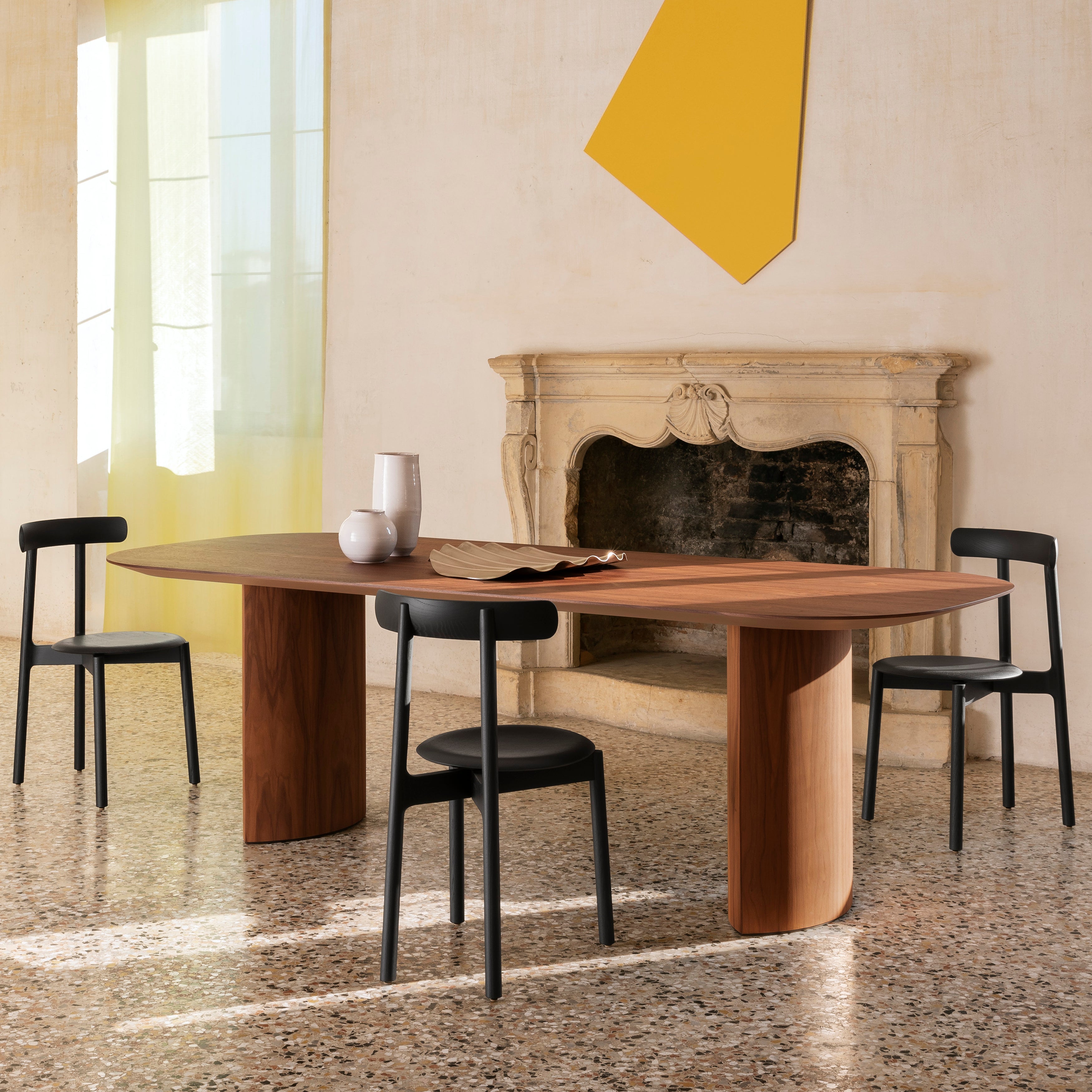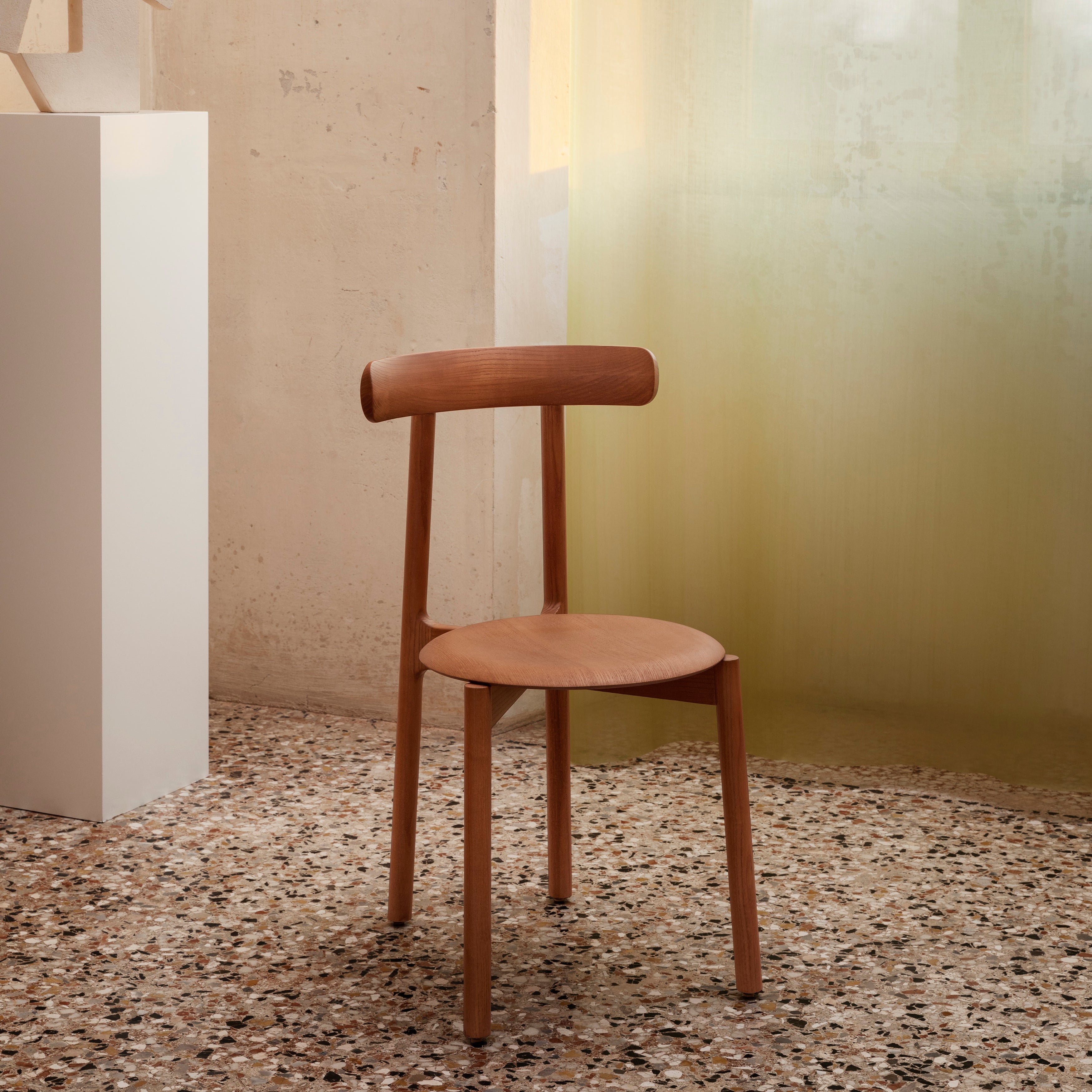 We love its simplicity: from its lines to its mood, declares Venice-based family Italian design firm Miniforms. Bice has everything we want from a chair. No argument here, as the distinctive arc of its backrest a single, solid piece of wood defines the chairs design ethos. The circular form repeats in the rounded wood seat, linked together by a frame that converges in a discreet yet essential X detail where the front and back legs meet.