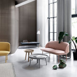 Sizing things up, designer Thomas Bentzen offers an outsize version of his charmingly naïf Around Coffee Table for Danish brand Muuto. Scandinavian design takes a lighthearted turn in his signature round tabletop rimmed with a strip of bent wood. Durable lacquer finish in natural oak or a selection of strikingly cool colorways.