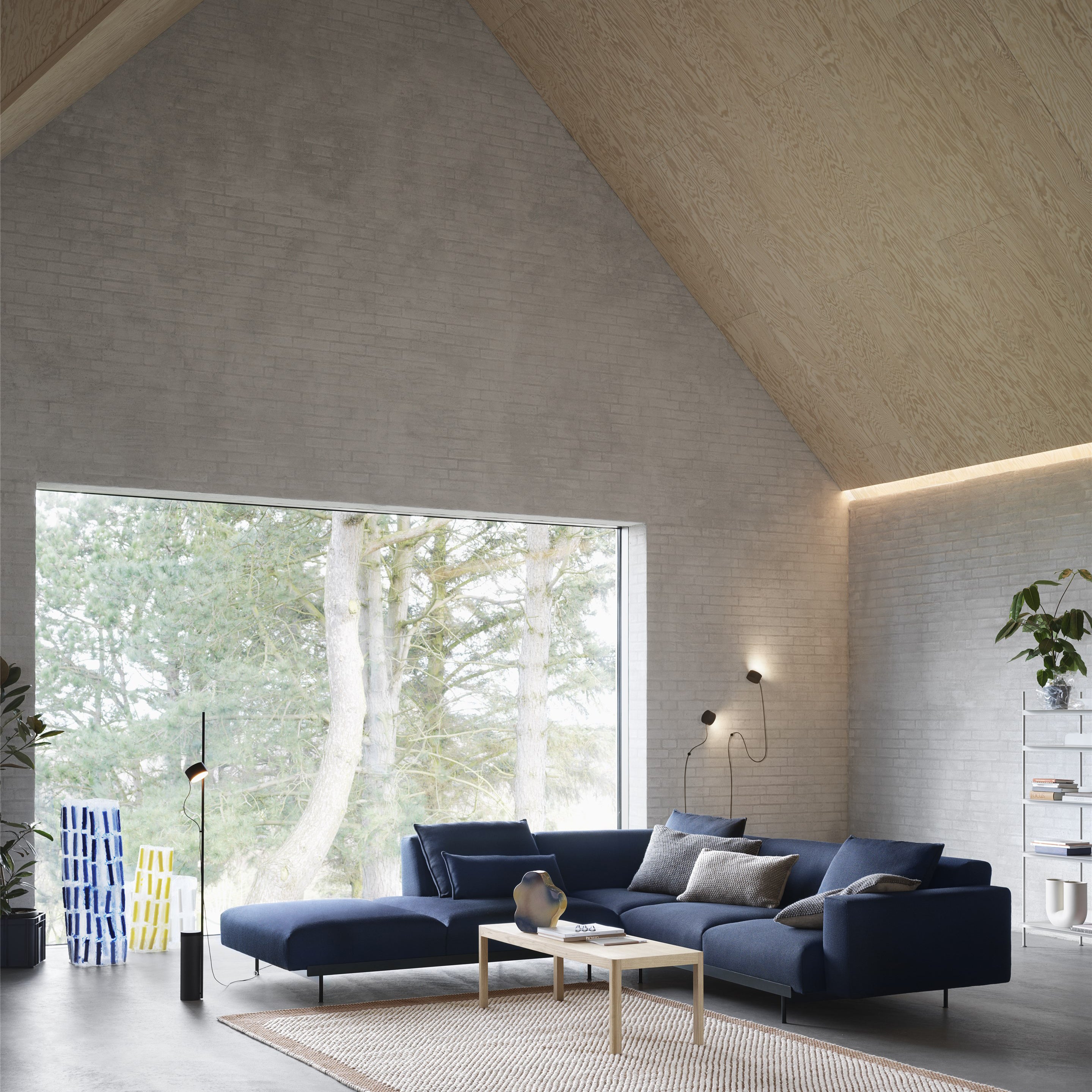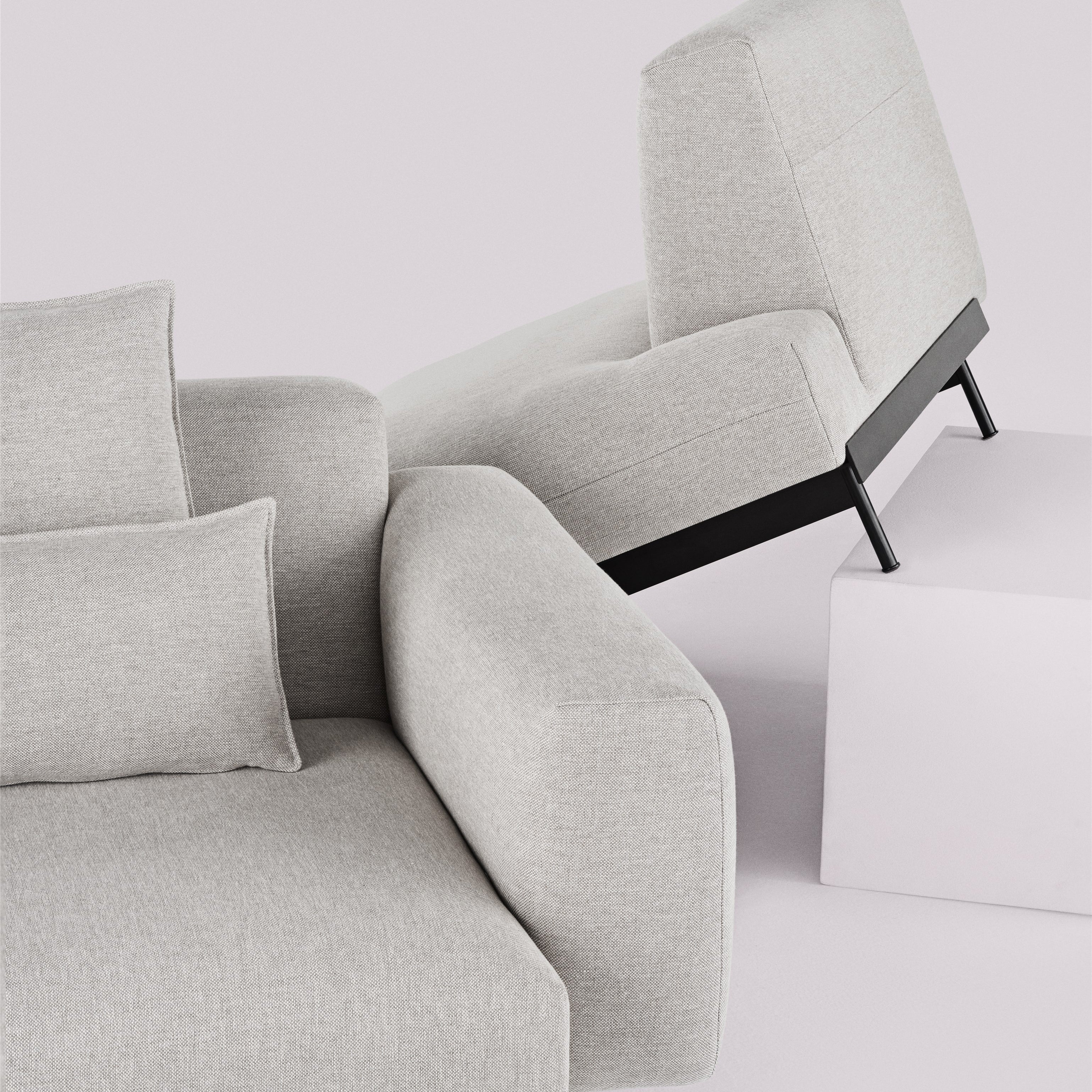 With In Situ, designers Anderssen & Voll say they meld "the grandeur of traditional Italian sofas with the refined simplicity of Scandinavian design." Working with Copenhagen brand Muuto, the Norwegian studio arrived at a distinctive modular scheme, with 30 prearranged configurations based on the 9 different seating styles and 2 loose cushions. A powder-coated steel frame runs along the seat and back of the sofa and visually unifies the separate units. In Situ's crisp profile and deeply comfortable proportions are realized with wood construction and foam, wadding, and fiber ball fill.