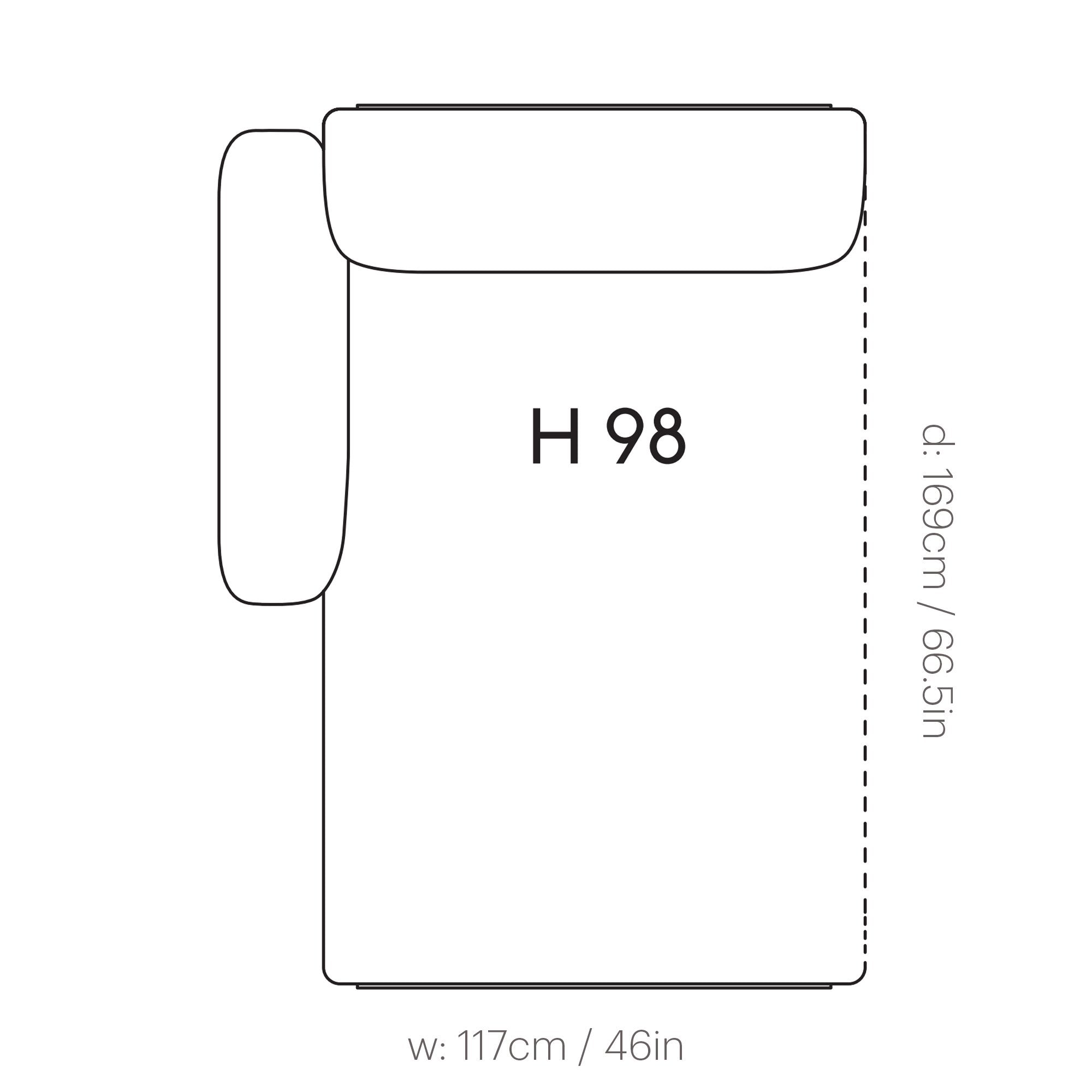 - Left/Right armrest lounge: 27.6" h x 46.1" w x 66.5" d (70x117x169cm)