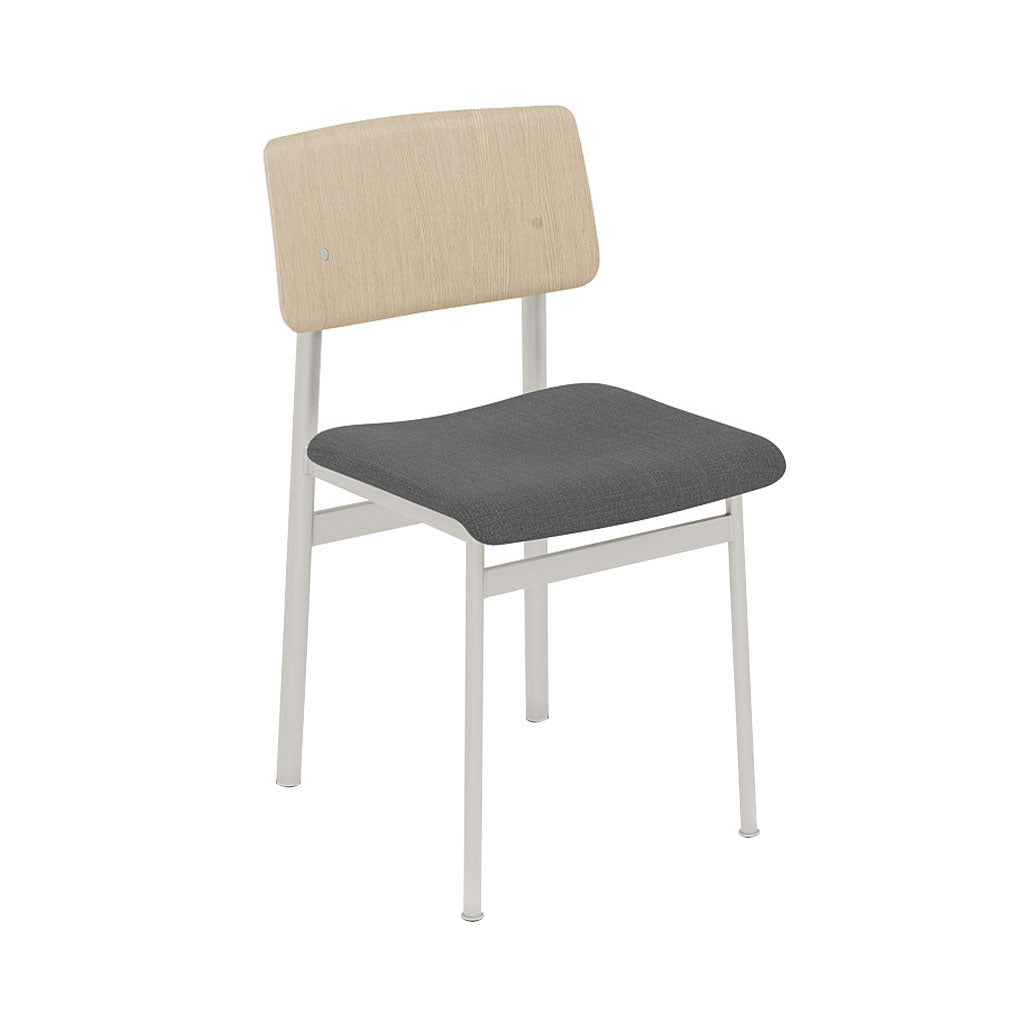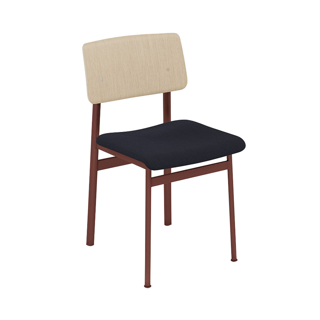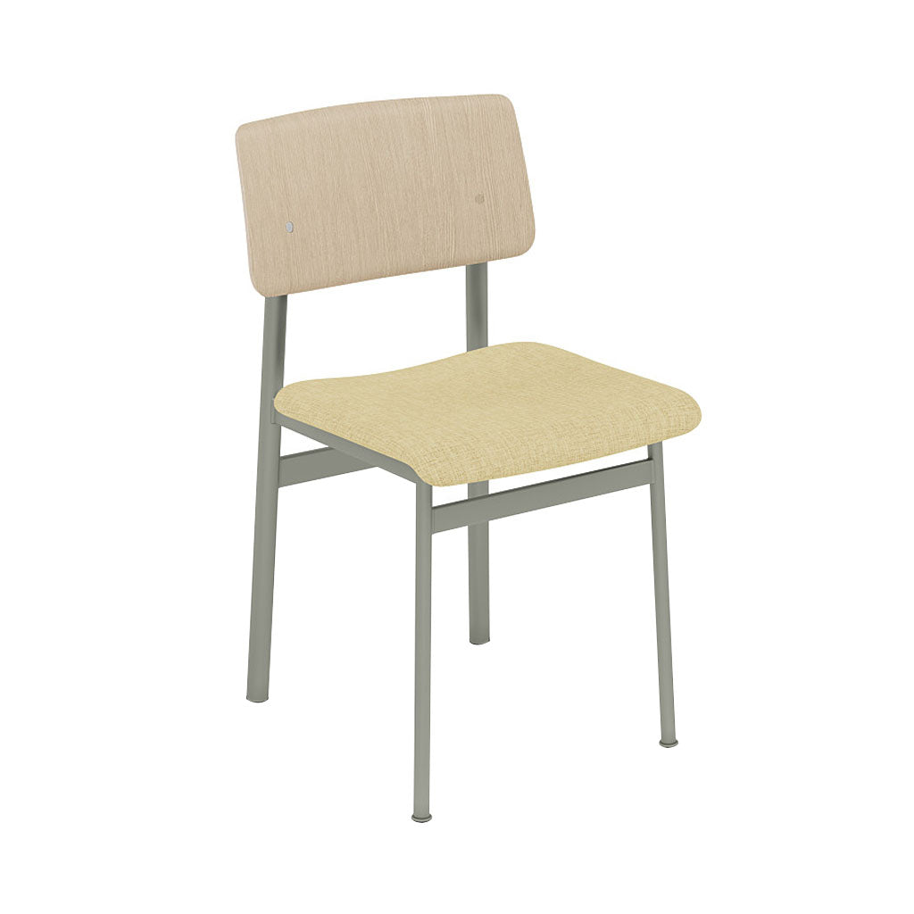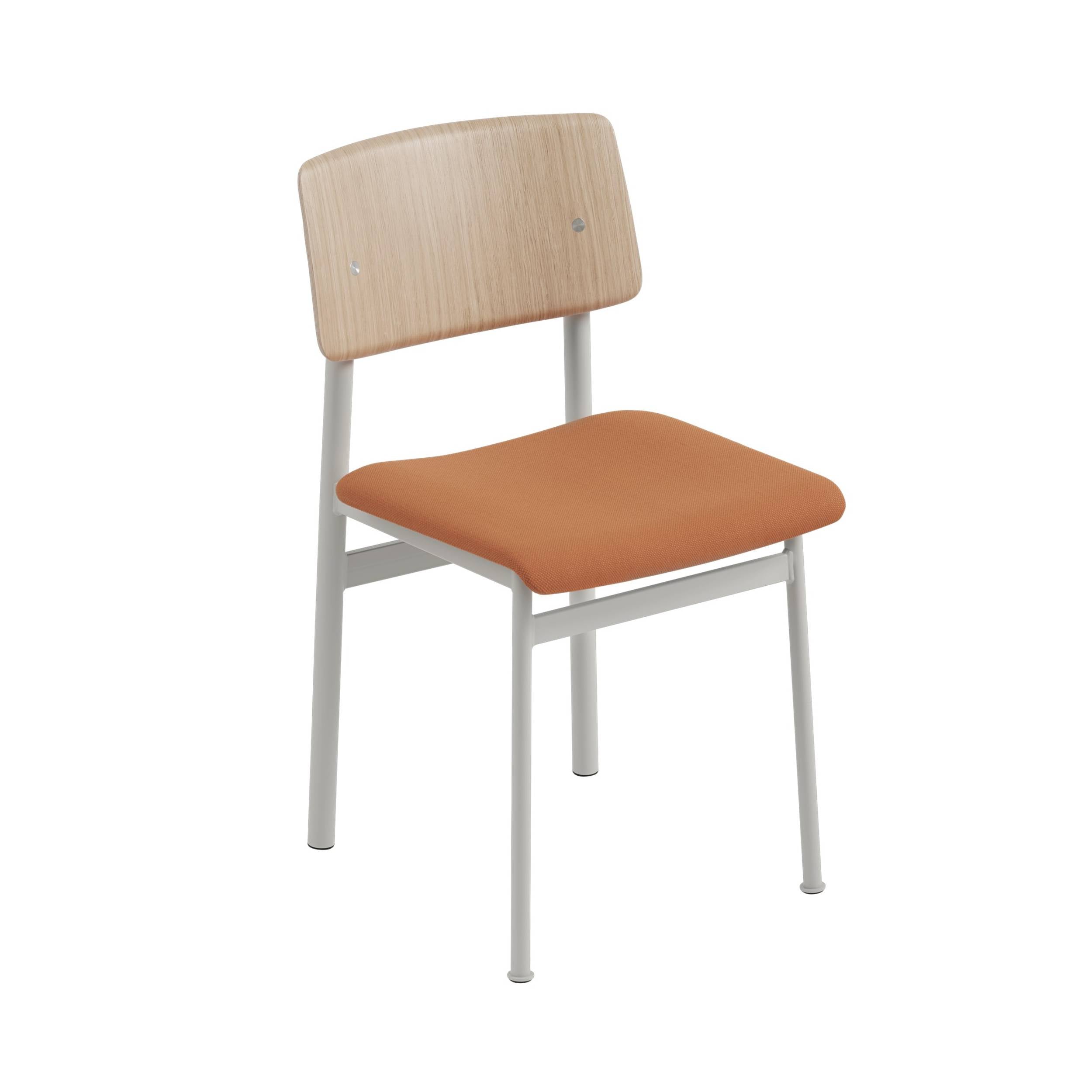 An upholstered seat adds a bespoke option to Muuto's versatile seating inspired by industrial environs. Loft Chair features compatibly contrasting materials, with its angular frame in powder-coated steel and comfortably curved backrest and seat formed in lacquered oak veneer. Thomas Bentzen's design has a welcome character while still providing all-purpose functionality and everyday durability for high-impact settings such as restaurants, meeting rooms or dining areas in the home.
