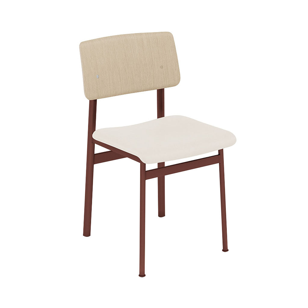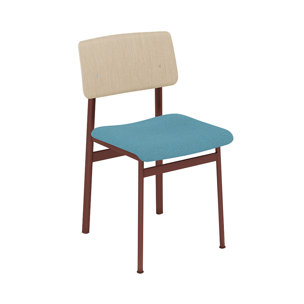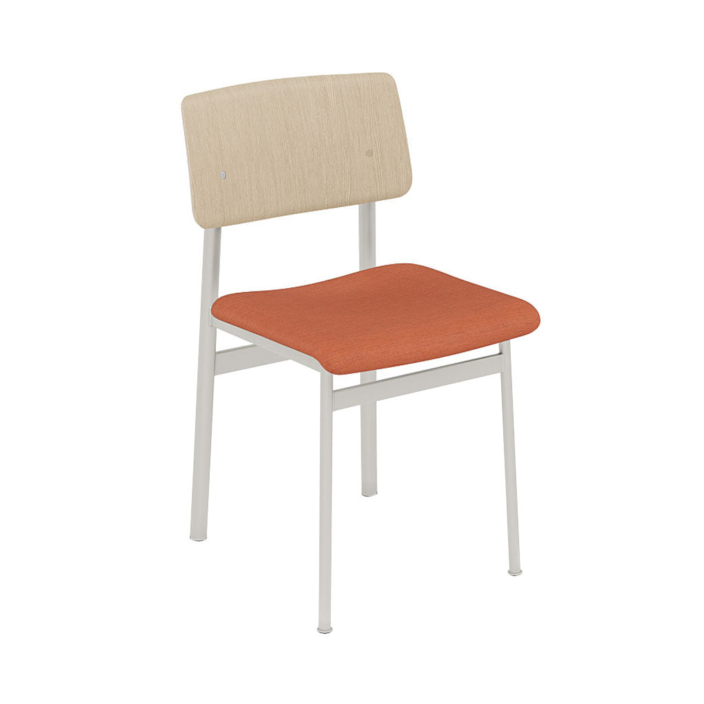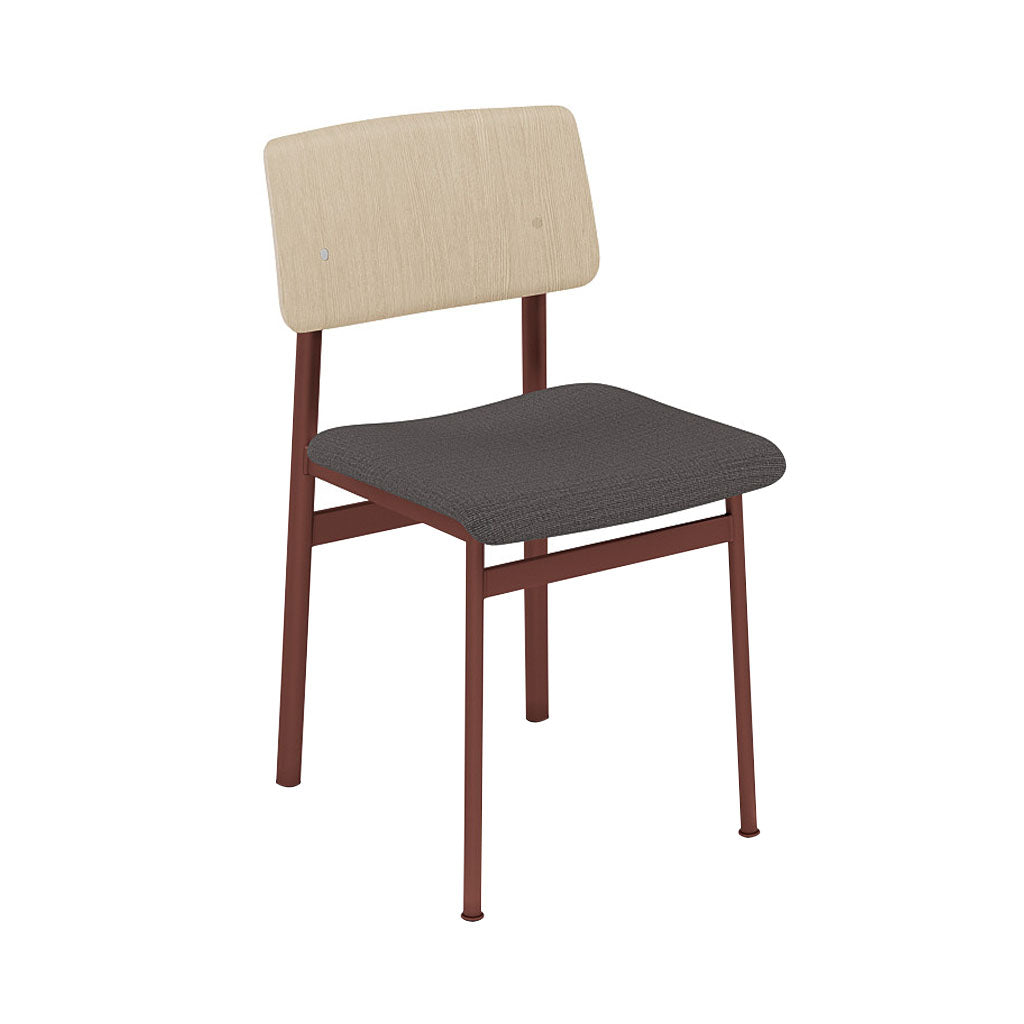 An upholstered seat adds a bespoke option to Muuto's versatile seating inspired by industrial environs. Loft Chair features compatibly contrasting materials, with its angular frame in powder-coated steel and comfortably curved backrest and seat formed in lacquered oak veneer. Thomas Bentzen's design has a welcome character while still providing all-purpose functionality and everyday durability for high-impact settings such as restaurants, meeting rooms or dining areas in the home.