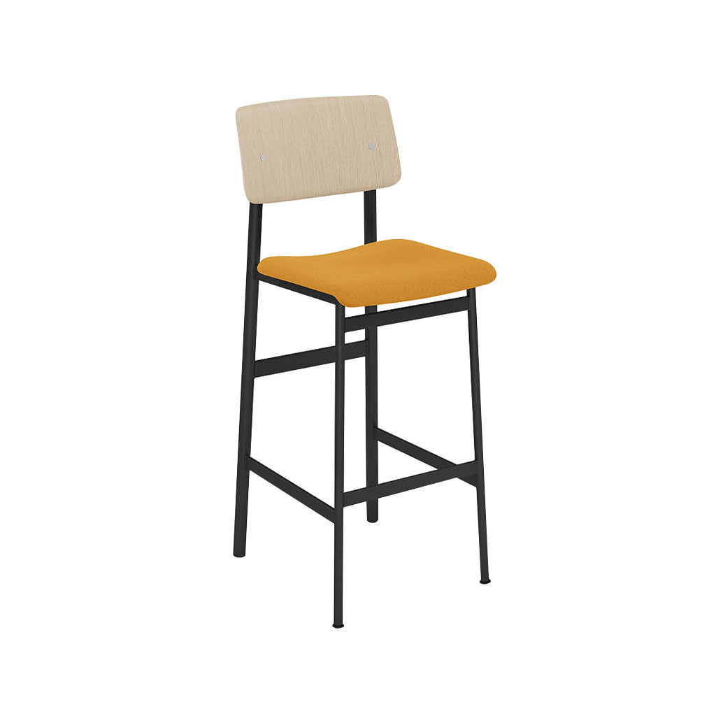Already having a generously proportioned curved seat and backrest, Mutto’s counter stool version of Loft adds upholstered cushioning to the comfort equation. Retaining its compact footprint thanks to its legs being positioned neatly under the seat, designer Thomas Bentzen's wood-backed seating extols the virtues of clean-lined design in the Nordic tradition, now updated with a powder-coated steel frame. Additionally, the choice of fine fabric or leather lends a custom look to suit any chosen residential or hospitality setting.