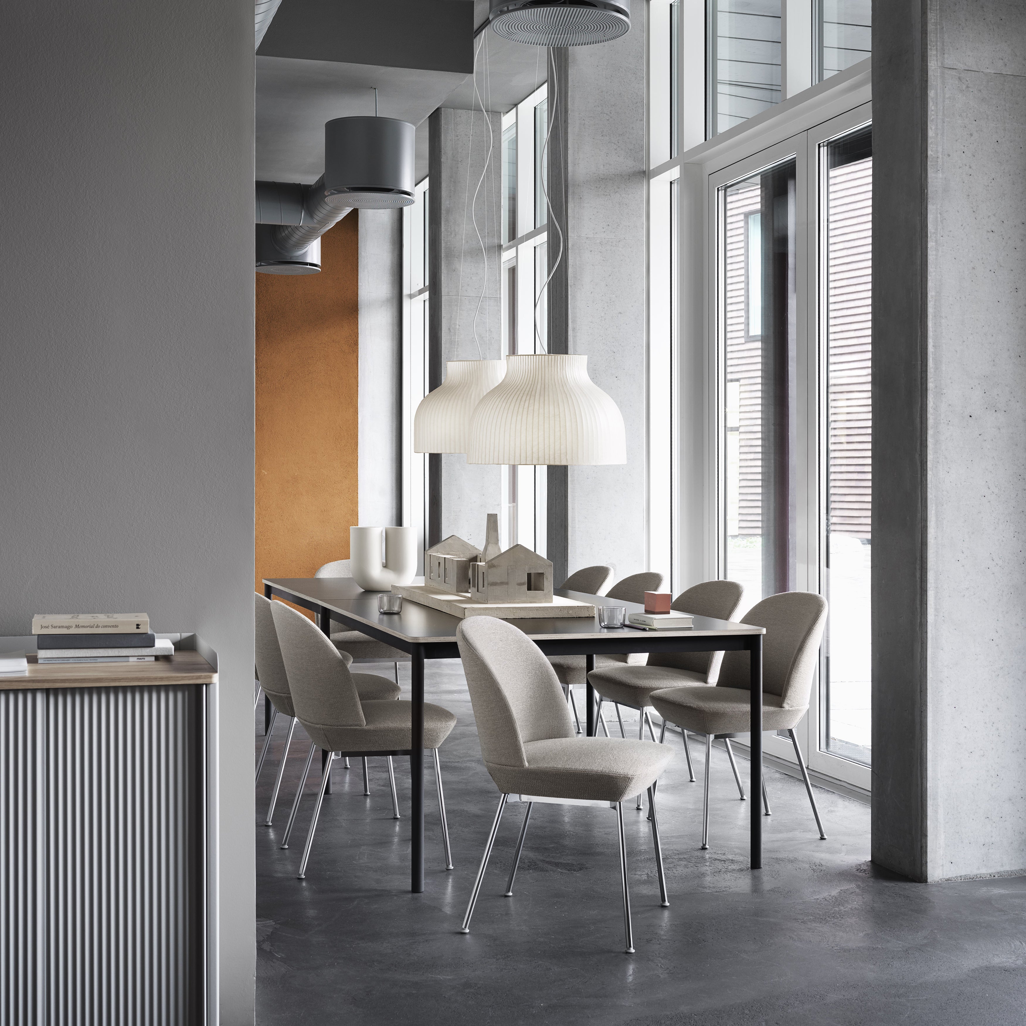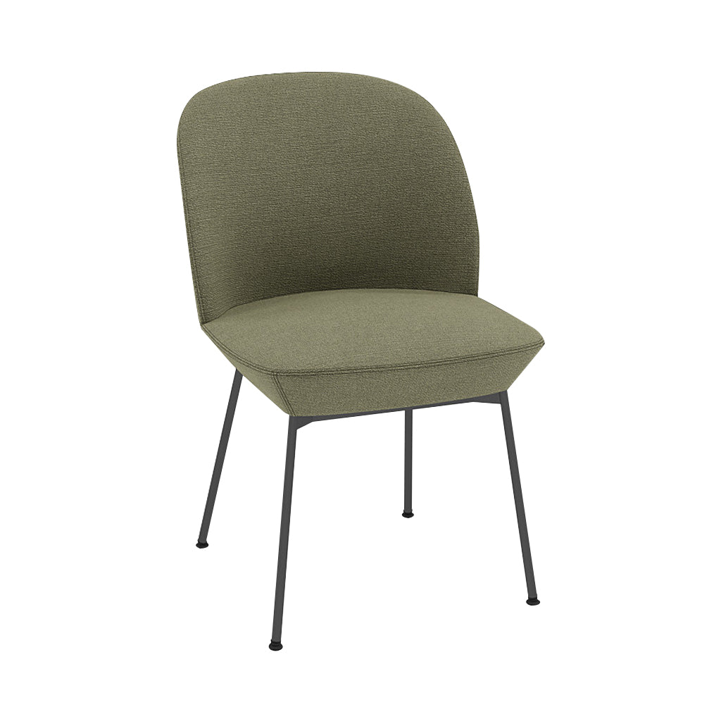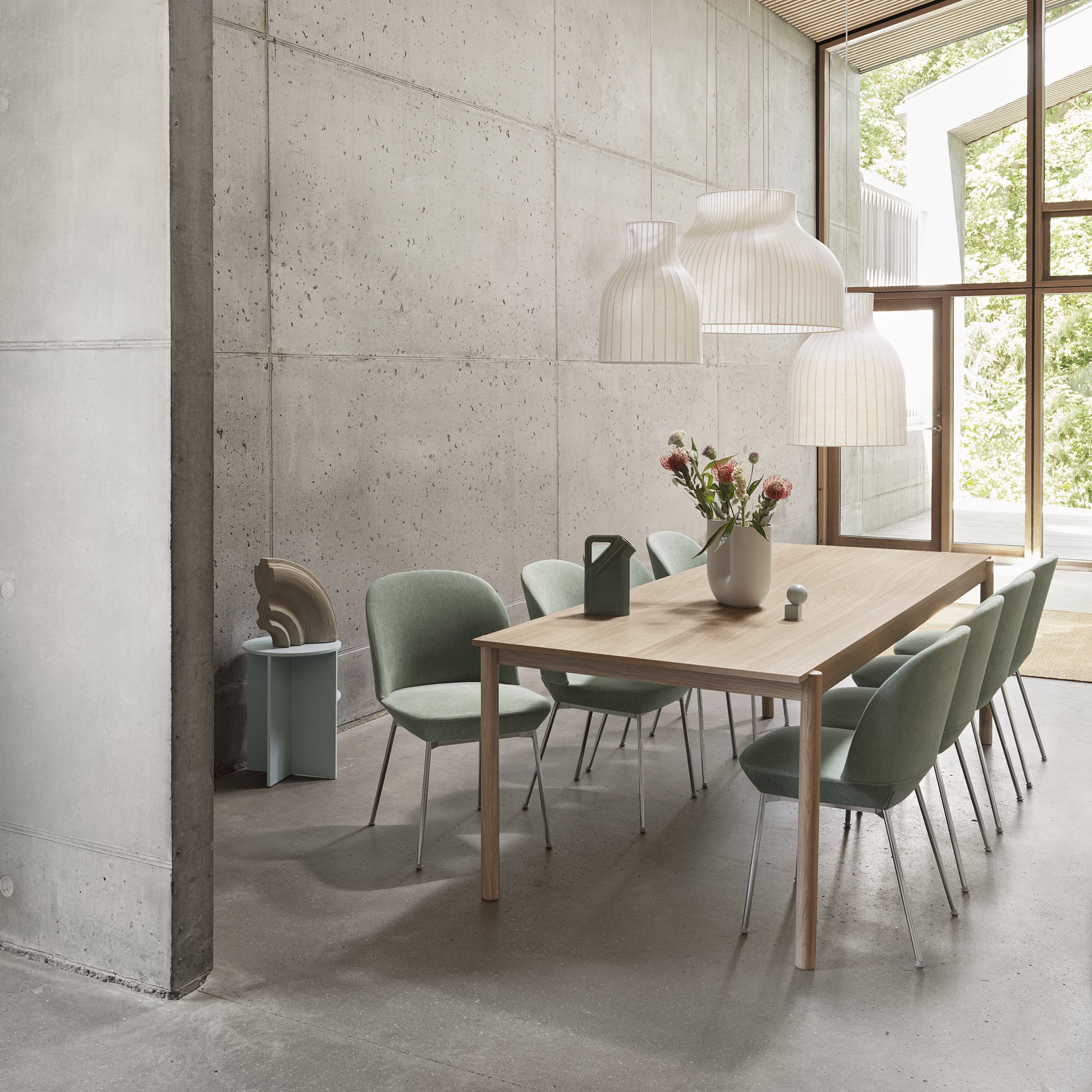 With its molded-foam cushioning and clad in a refined textile of choice, Mutto’s side chair defines soft power. Oslo melds a distinctive geometric silhouette with an emphasis on comfort that equally suits spending hours at a dining table or work-desk. Available with anthracite black or chrome legs, the curved-back design lends an appealing sheltering quality to the seating.