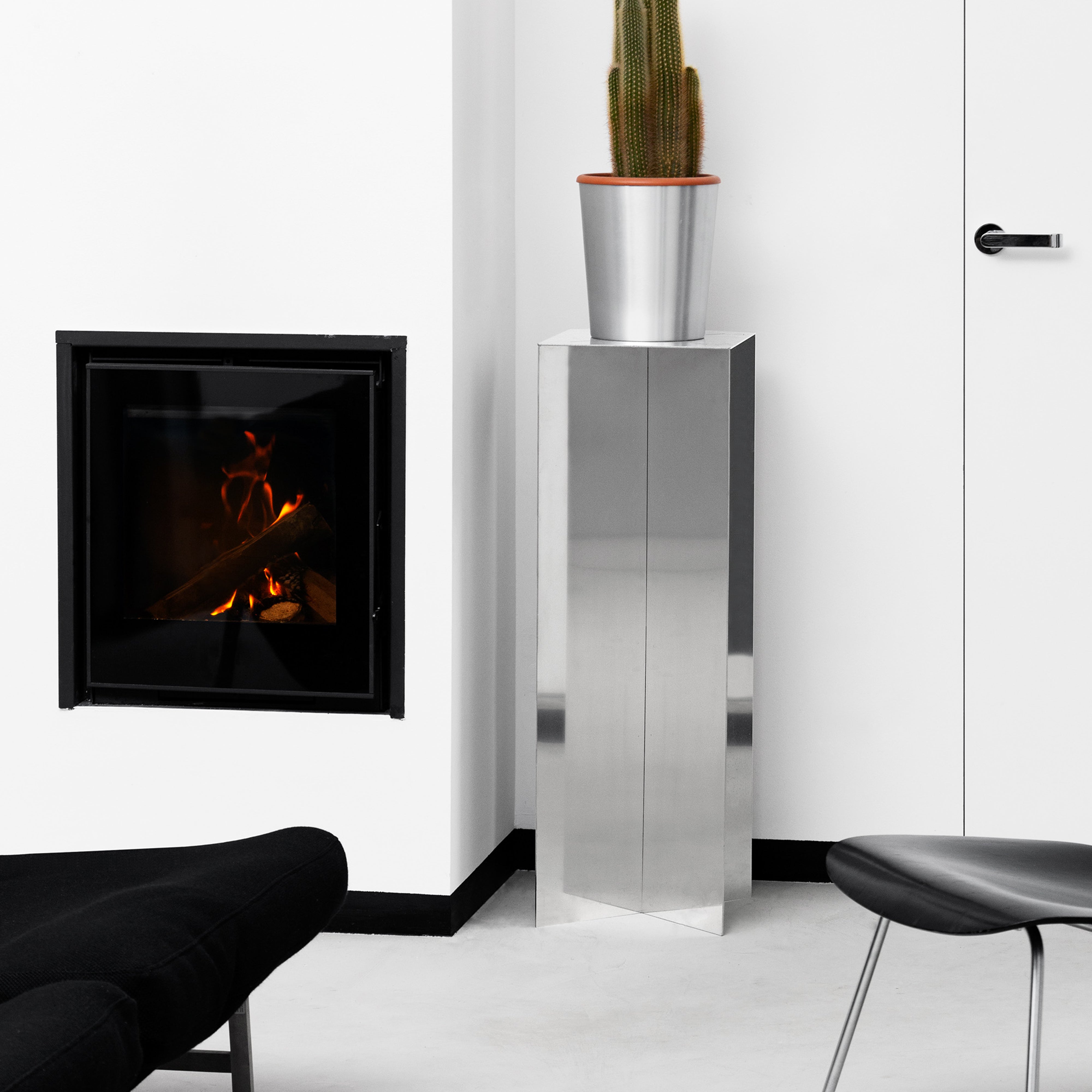 Crafted from 3 mm BA Inox stainless steel, this square pedestal embodies NM3’s industrial design language through its precise laser‑cut form and dry‑joint assembly, free of welds or coatings. It offers a sturdy, minimalist platform ideal for displaying objects. The uncoated surface preserves the raw texture of the metal, resisting wear and retaining its sheen through regular use.
