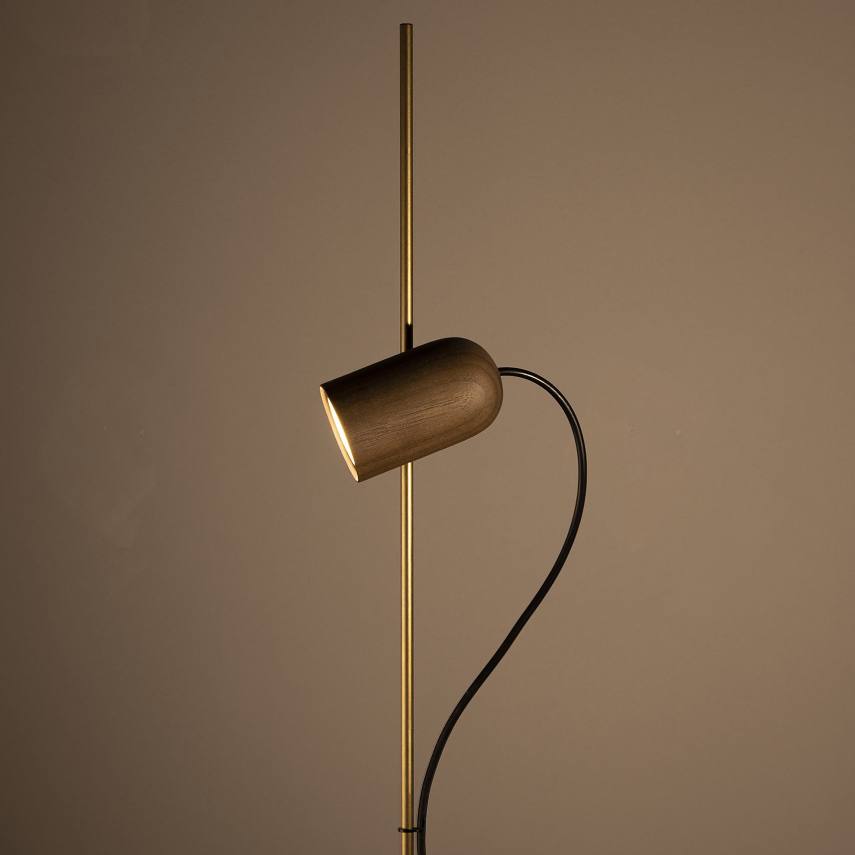 The Onfa Floor Lamp blends natural wood with metal for a refined look. Its metal body, available in brass or graphite finishes, is paired with a spotlight and base crafted from walnut, oak, or black ash wood. A magnet-based mechanism allows for easy adjustment of the light’s direction, adding flexibility.