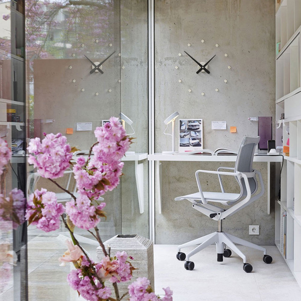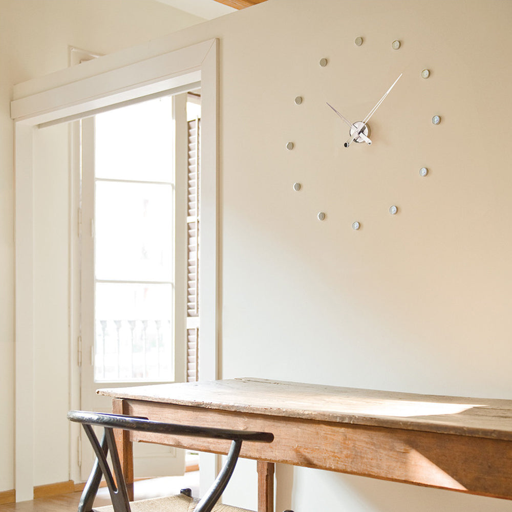 With enduring Midcentury vibes, Rodón offers a minimalist approach to timekeeping, with tapered clock hands and wall-mounted time markers in a choice of 3 diametric sizes. Nomon’s essential design also gains versatility in the range of materials—graphite or polished brass finishes or a chromed option with either matching metal or colored clock hands— and is completely handcrafted in Spain, powered by a German quartz mechanism.