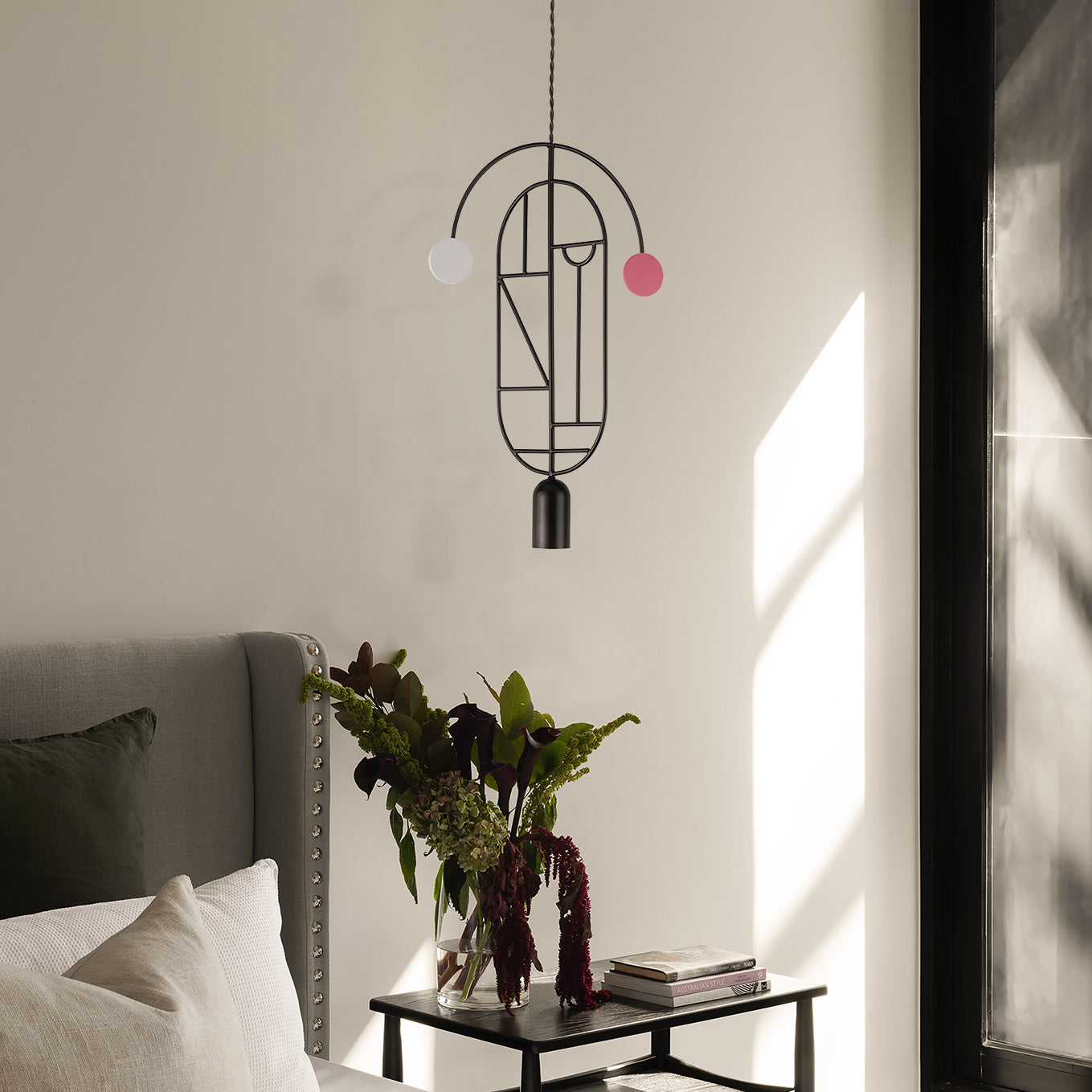 The Wooden Dots Suspension Lamp with Stem by Nomon Home is a pendant light crafted from metal and handcrafted natural walnut wood. The lamp’s components can rotate around the cable, allowing for adjustable arrangements. Available in gold or graphite metal finishes, with circular details in walnut or coordinating colors.