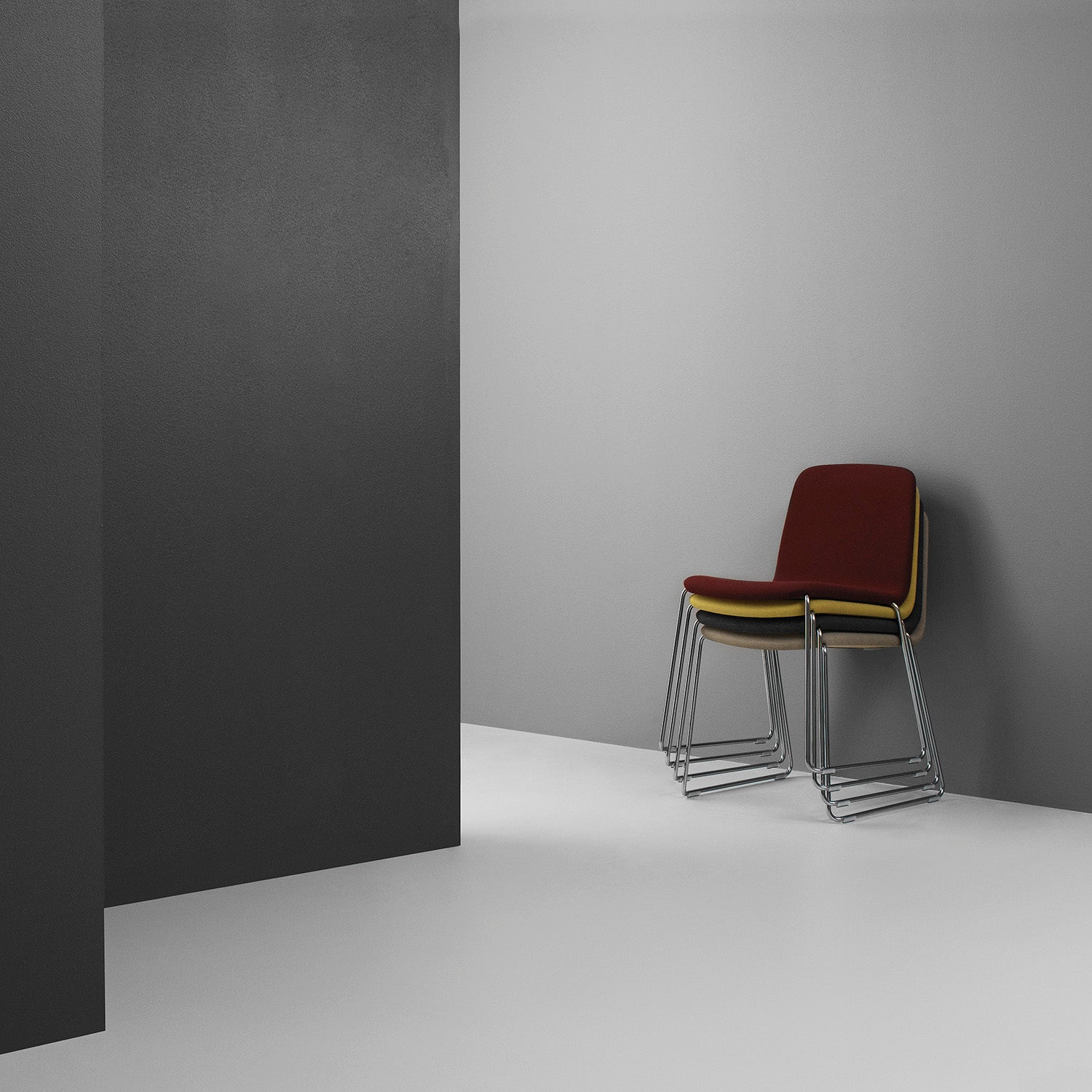 Upholstery adds a luxurious dimension to Just, the molded seating designed by Iskos-Berlin. Starting with a shell made of molded ash veneer and covered with PU foam, the chair is then sheathed in fine textile or leather. The gleaming chrome frame is seamlessly mounted to the seat underneath and the chair is stackable, though care must be taken not to harm the fabric. Just makes for “just” a versatile addition at home or in the workplace.