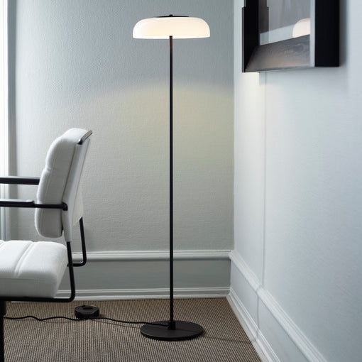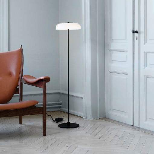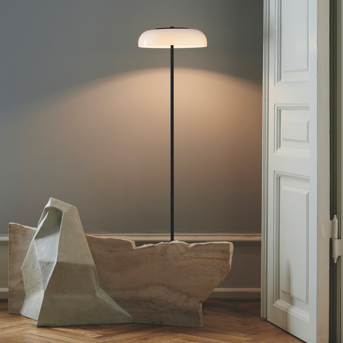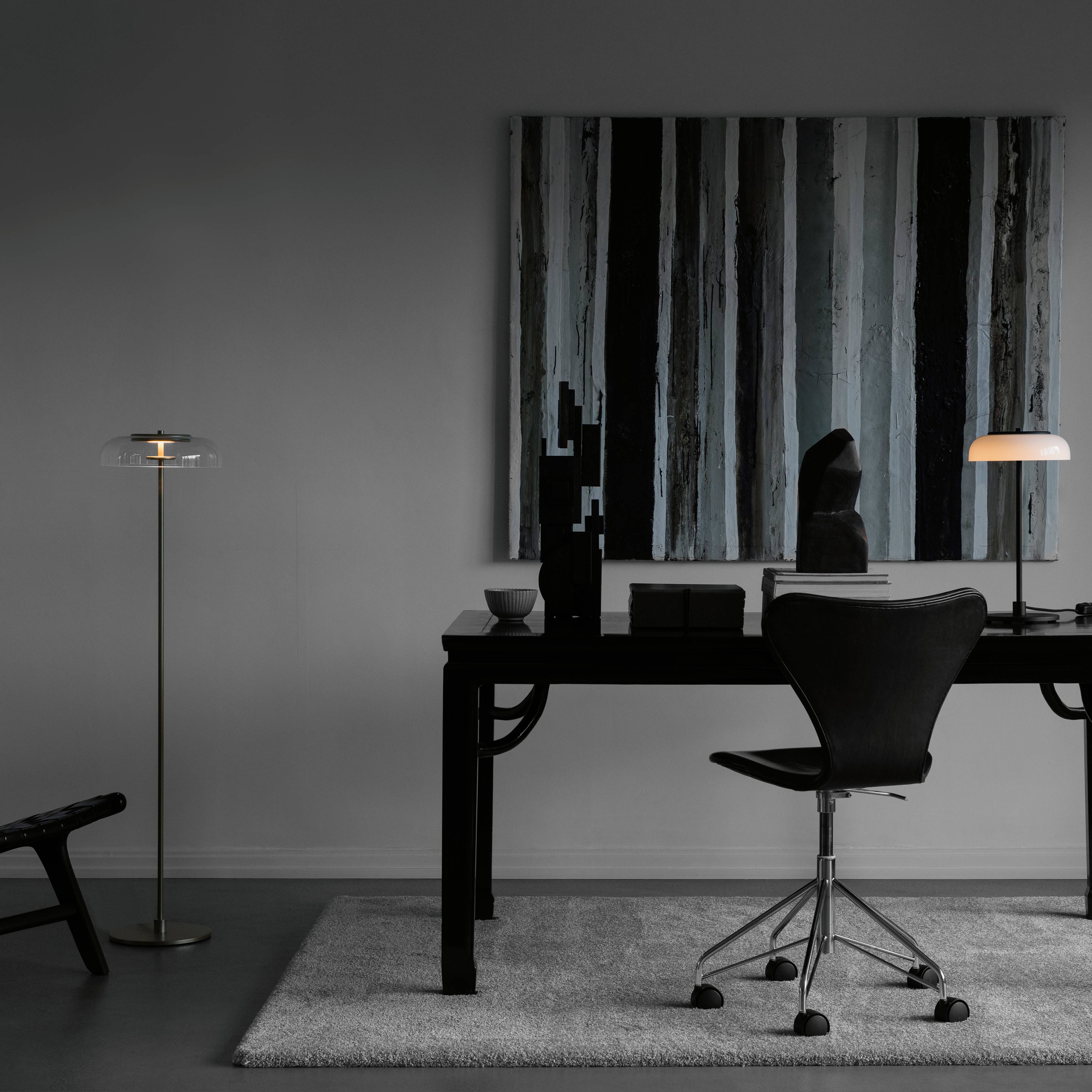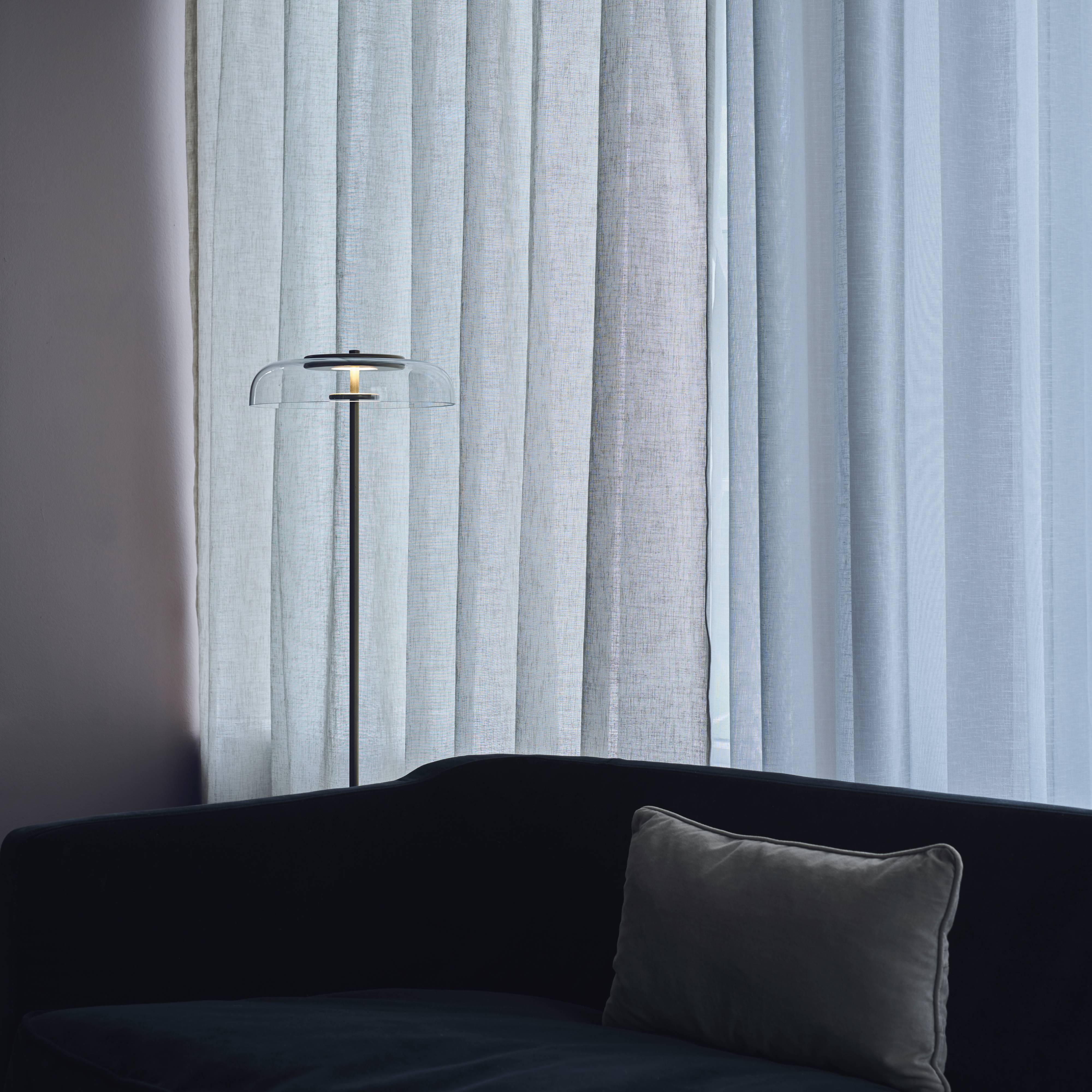 Standing tall with a slender gold-tone structure and crowned with a clear shade in mouth-blown glass, the floor lamp from Nuura's Blossi collection is a particularly refined addition to any interior. Danish designer Sofie Refer sought to capture the quality of her native Nordic light and has fashioned an innovative lamp that employs all the newest technology. A specially developed LED disc is placed so it reflects in the transparent glass shade and the golden finish metal, which spreads a soft and even indirect illumination. And the light source is rated to last for up to for 50,000 hours of use. Blossi brings a warm, cosy and near-endless source of beautiful light to both living rooms and other corner spaces.