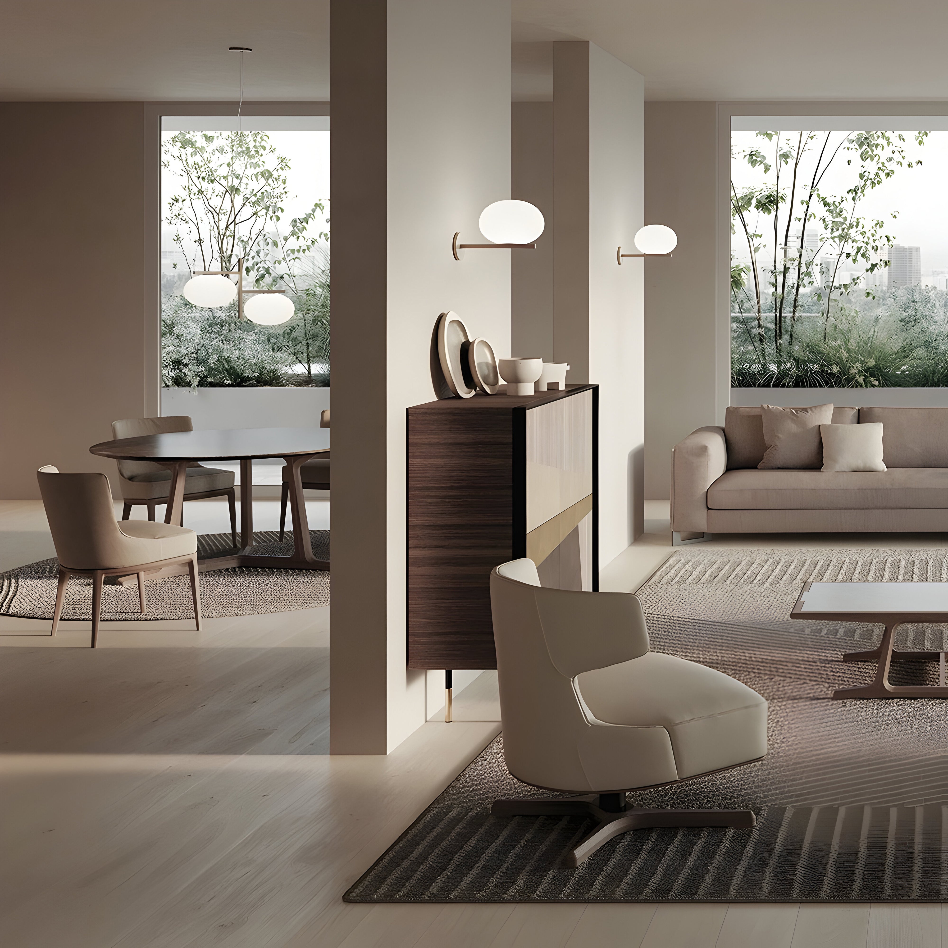 Designer Mariana Pellegrino Soto’s imagination was inspired by a drop of water—with Alba’s similarly shaped mouth-blown shade taking form in polished opaline glass. Contrast comes in the geometric wall mount fashioned in satin-finish brass, all rendered by Oluce, named an Italian Historic Brand for its more than 70 years of lighting innovation.