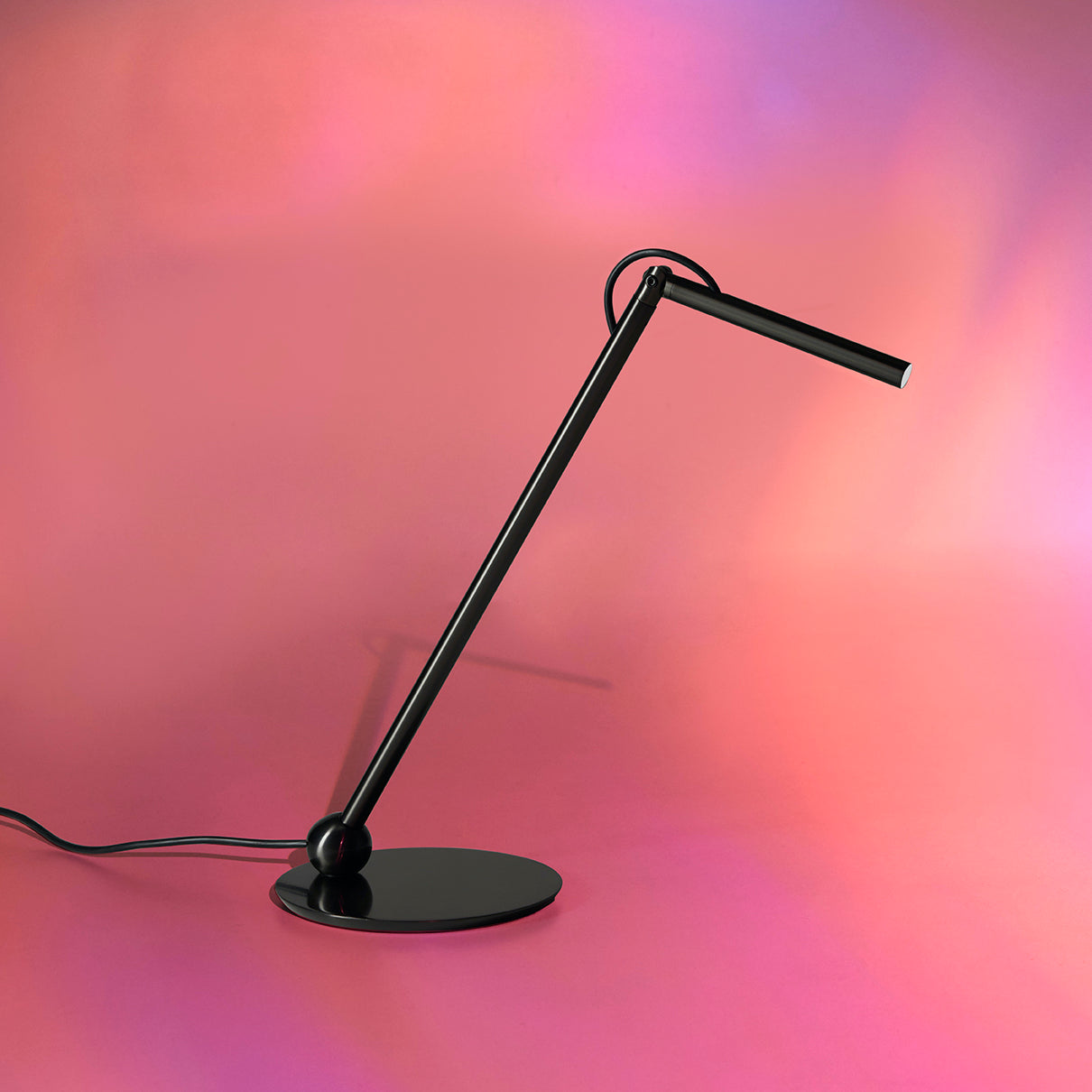 Light and flexible, Calamaio’s personality is expressed through the bold colors and glossy lacquer finish of its strikingly linear silhouette as designed by Cervellieri, Di Lorenzo, Montini. A bendable 2-section wand pivots off the the table lamp’s spherical round base, allowing the LED positioned at the end of the rotating head to be pointed right where the light is most needed.