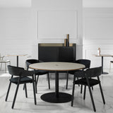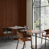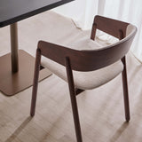 The Mava Armchair features a solid oak or walnut frame with a upholstered plywood seat and backrest. The chair arrives fully assembled and includes plastic or felt glides to protect the flooring. Its robust yet lightweight design makes it suitable for both residential and commercial spaces. Available in 5 finishes.
