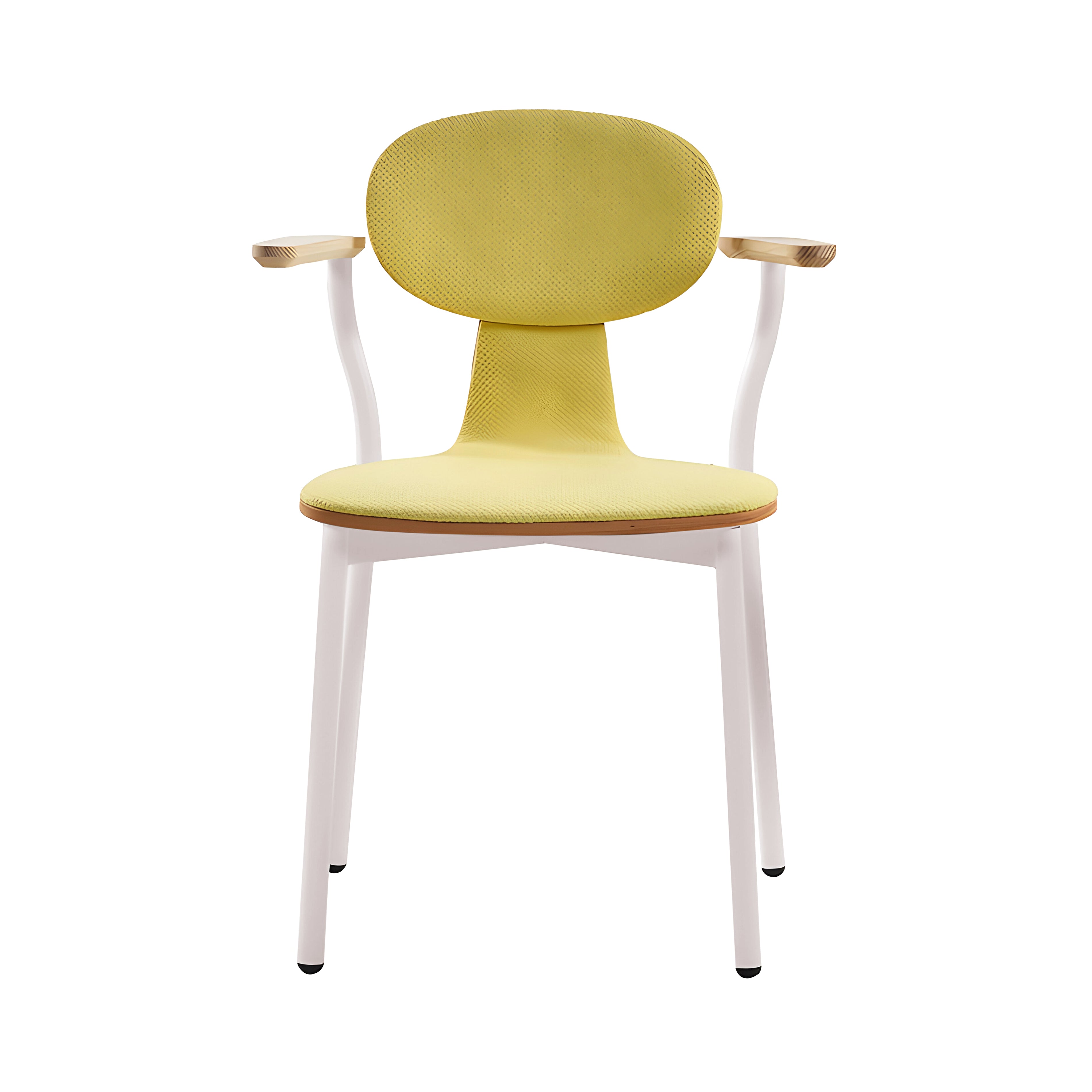 Celebrating Sancal's 40th anniversary, the Silla40 Dining Chair with Armrest features a design where each backrest pays homage to a distinct era in furniture history. The structure combines an upholstered seat and back with solid ash wood arms rests and a metal lacquered base available in black or cream white.