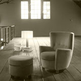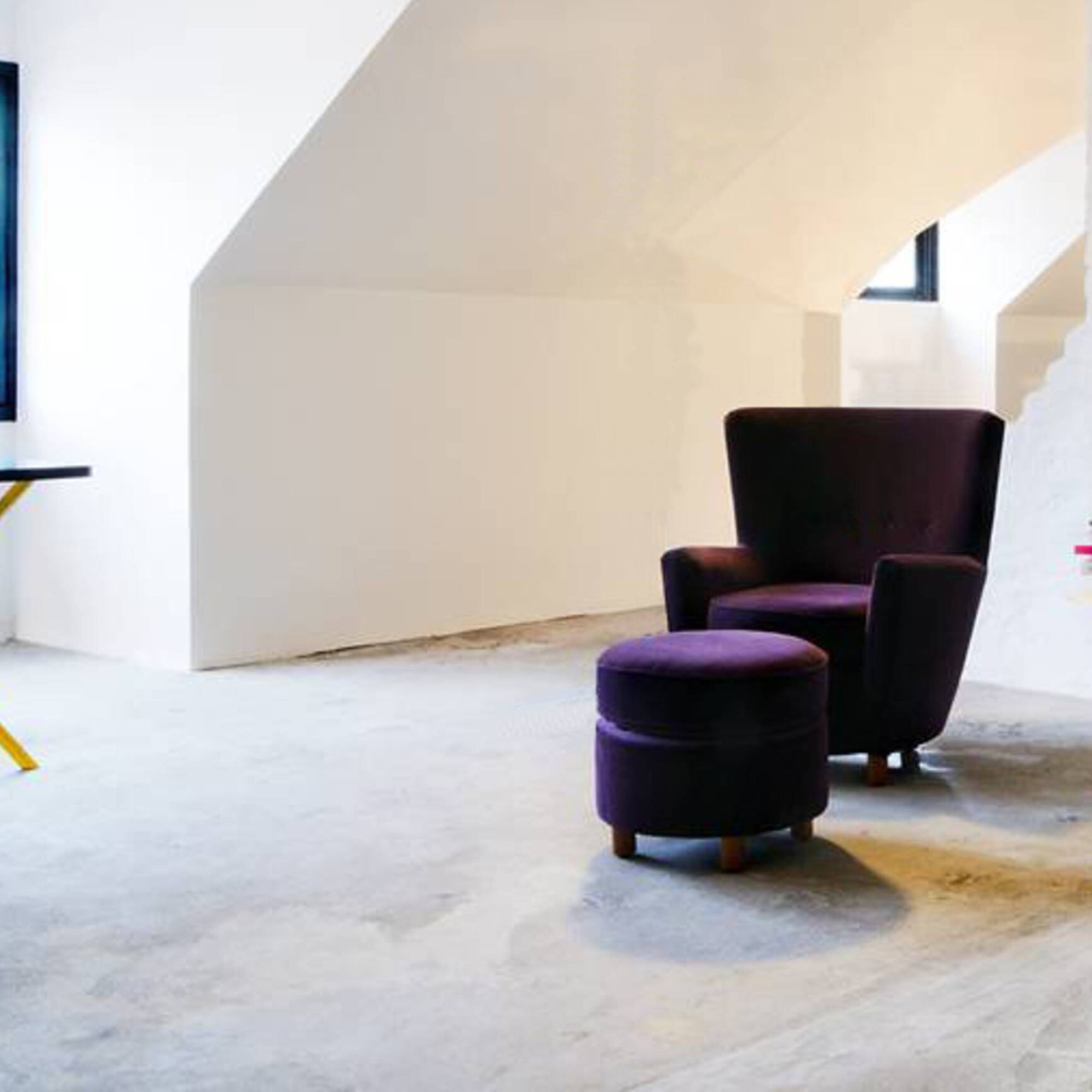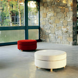 Stretch out in comfort with Santa & Cole's rounded ottoman to pair with its similarly contoured Moragas Armchair (also at A+R). Noted postwar architect Antoni de Moragas Gallissà designed only a few pieces of furniture in his lifetime and all are now considered classics. The footrest also doubles as an extra seat for guests, with hand-finished upholstery in a range of fine fabrics to match the chair.
