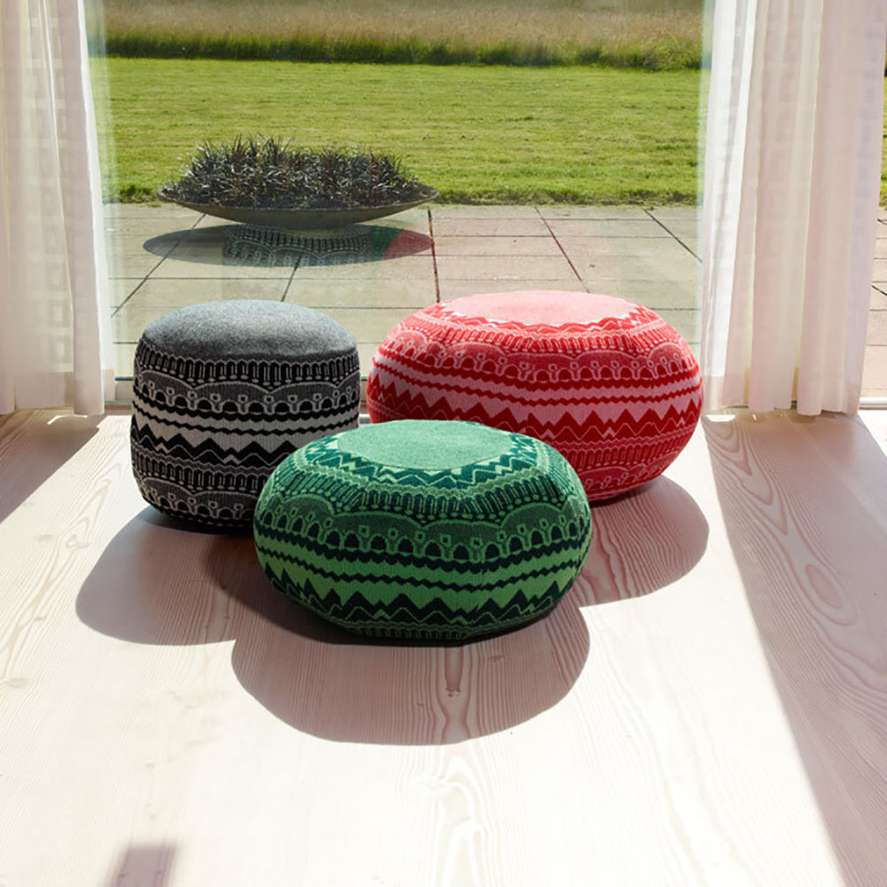 Frank fills out the trio as the largest of SCP's playful poufs upholstered in either knitted lamb’s wool or double-cloth woven panels reminiscent of orange segments. In a riot of patterns and colorful options, the wool for the cushion's covering is specially spun and dyed in England using traditional techniques and each one is plumped with recycled polyester fiber. Designer Donna Wilson's charming pieces are hand-crafted at SCP’s specialist factory in Norfolk, UK.