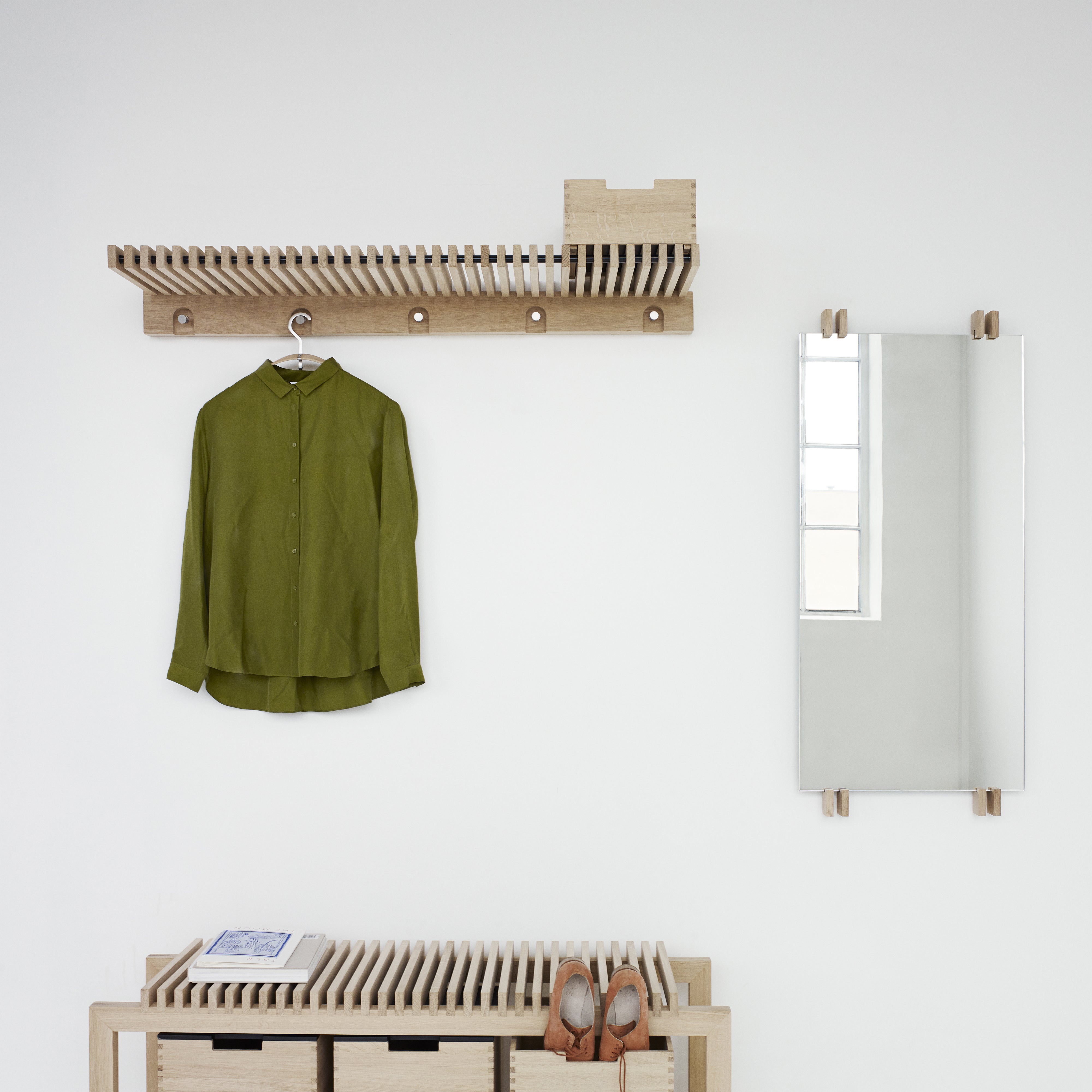 Niels Hvass’ handsome Wardrobe all-in-one proves minimalist design need not be multifunctional. Extending the Cutter collection, this planked wall storage serves as a shelf for hats and bags, a hanger stand for jackets and shirts and a coat rack. It’s the perfect solution for smaller entryways and narrow hallways without sacrificing a bit of Skagerak’s inimitable style.