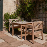 On its own or as a comfortable seat at the table, this chair is a favorite, first launched in 1982 by Denmark’s Skagerak. With neoclassic lines inspired by poet and painter Holger Drachmann, it has an undeniable presence along with its versatile functionality. Equal to all kinds of weather, the durable chair in untreated, sustainably sourced teak ages with grace, taking on a silver-grey patina.