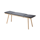 Designer Chris Liljenberg Halstrøm melds a Nordic sensibility with Japanese influences in her mixed-media bench. Georg takes form on slender wooden legs and is beautifully crafted with rounded edges in FSC-certified oak. An invitingly soft woolen cushion is held in place with simple braided leather straps for an unexpected fillip.
