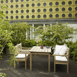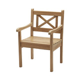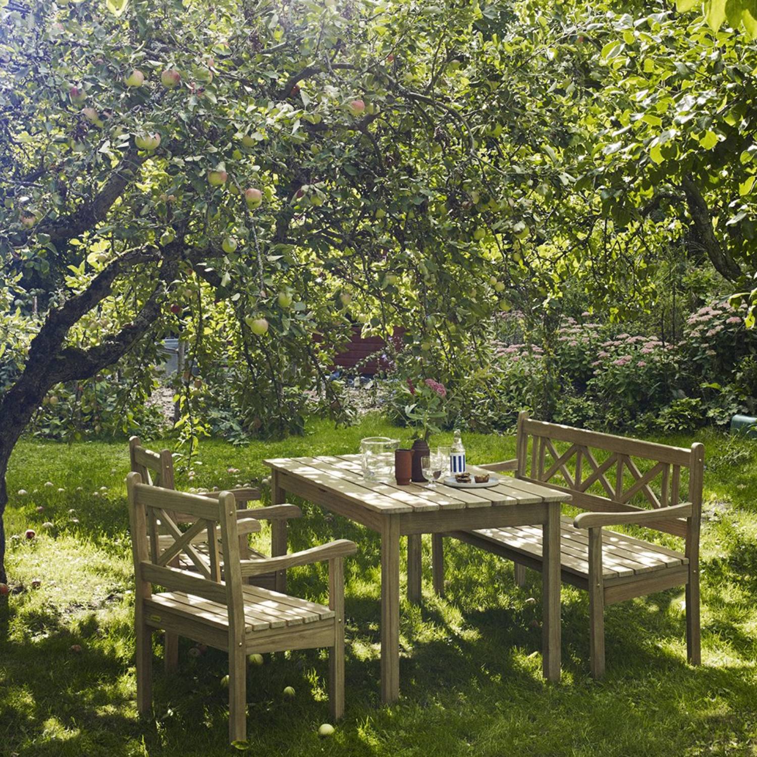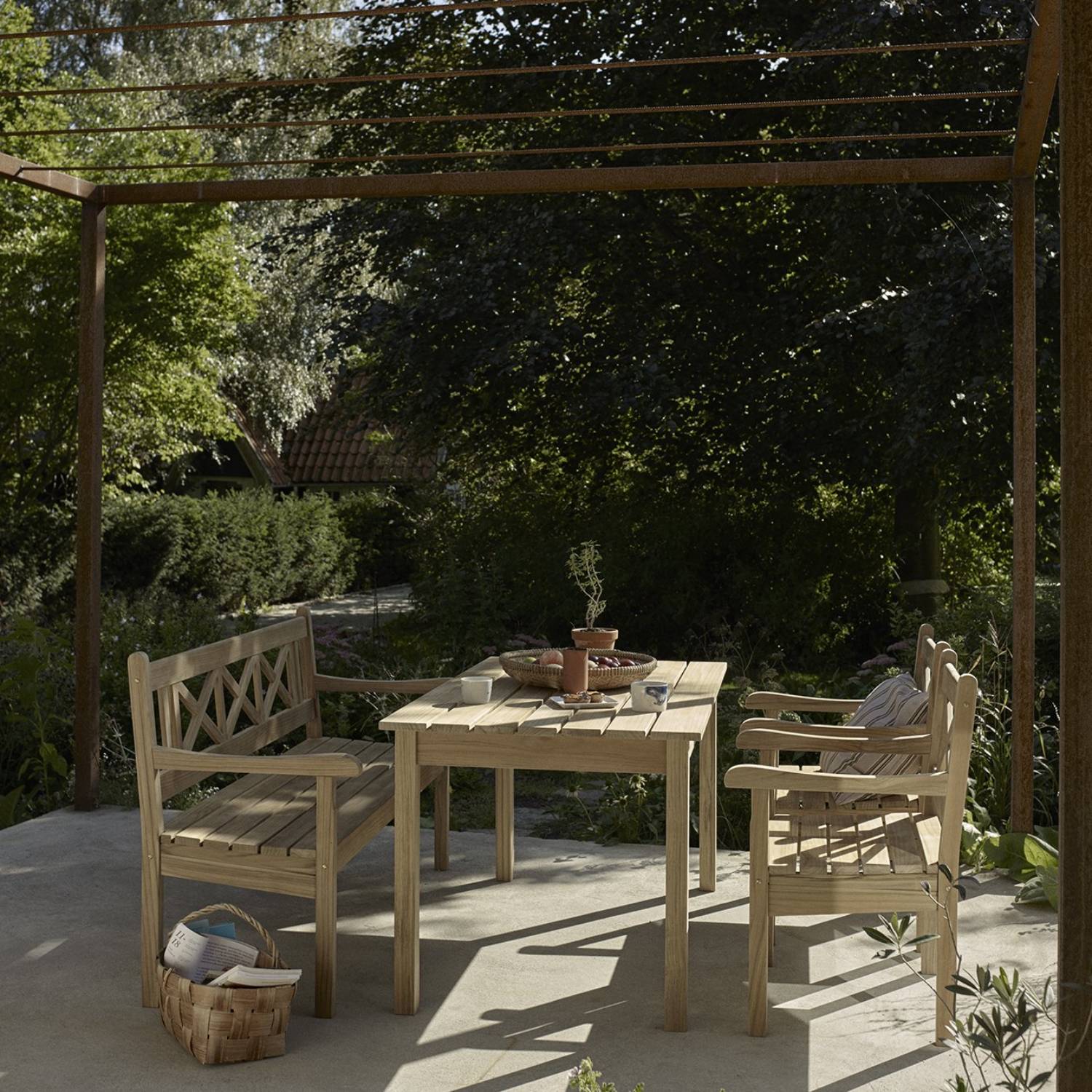 Skagen's namesake chair pays tribute to the artists and writers who made the northern tip of Denmark their home in the late 19th century. With its signature X-pattern backrest and solid air, it has the timeless appeal of all things Scandinavian. The bench is FSC-certified teak and will eventually weather to a beautiful silvery grey if left untreated.