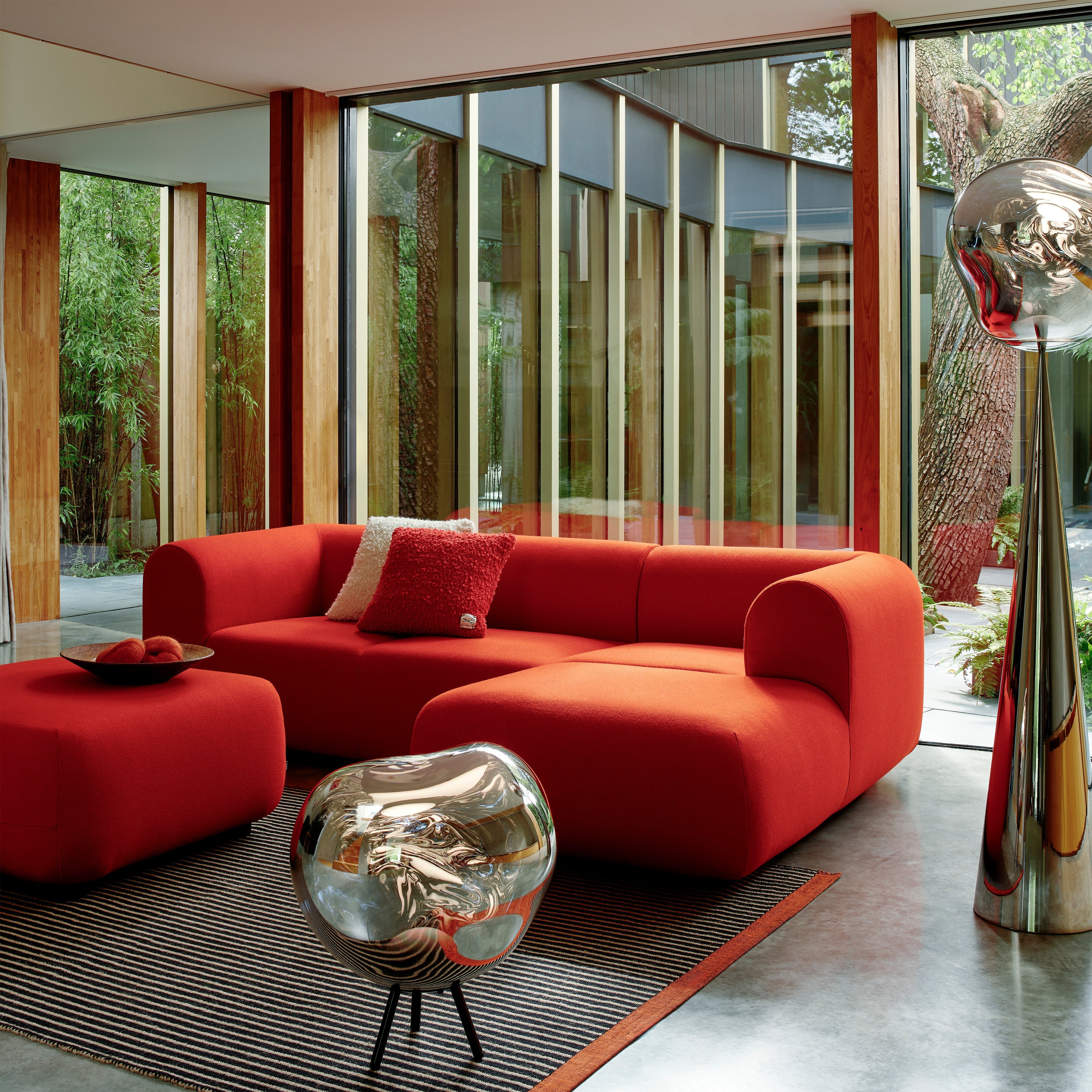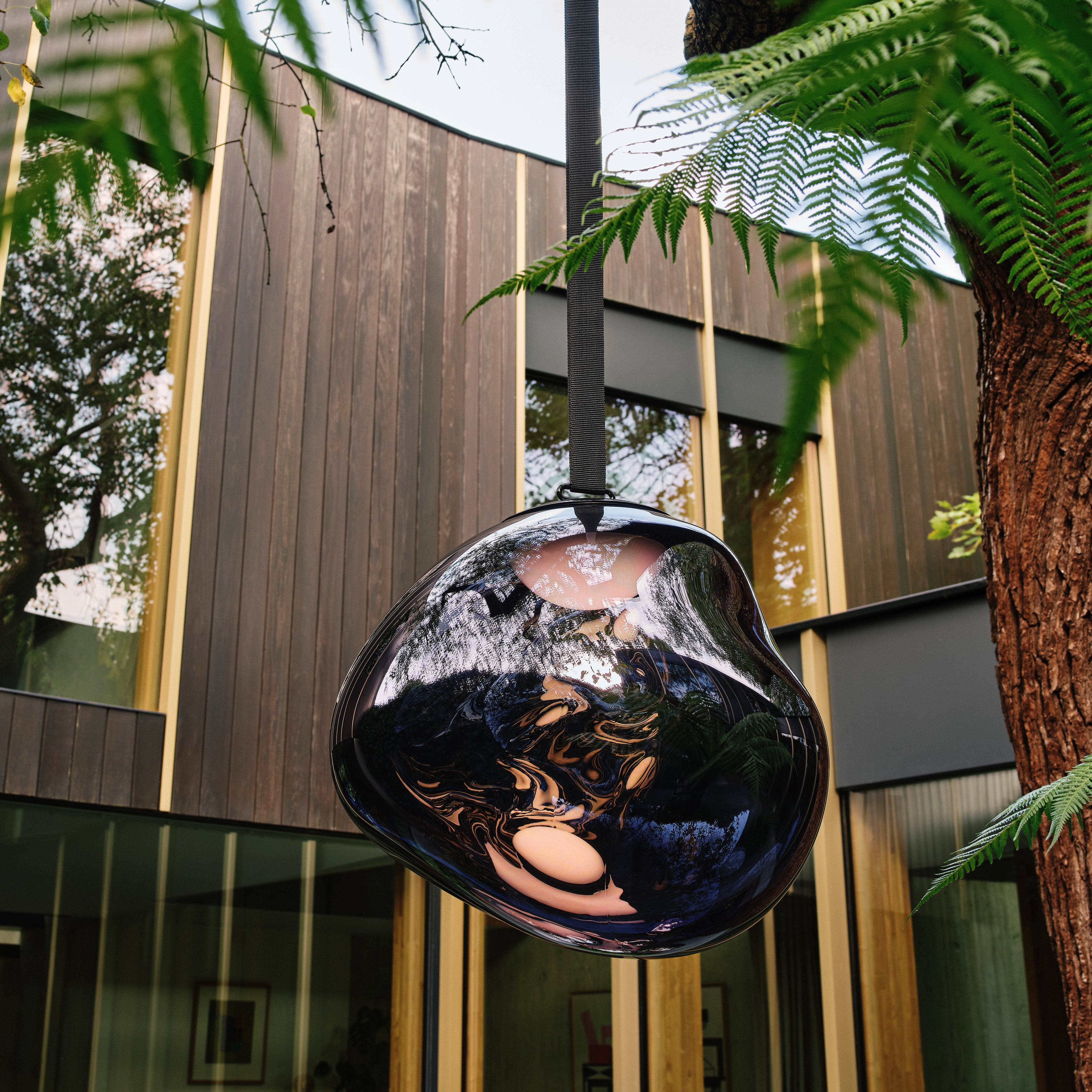 The Melt Portable Lamp by Tom Dixon showcases a mesmerizing hot-blown glass effect, reminiscent of molten glass or melting glaciers. This rechargeable lamp offers up to 10 hours of battery life, providing flexibility for various settings. Available in finishes Opal, Smoke, Gold, Copper, and Silver.Available April 2025.