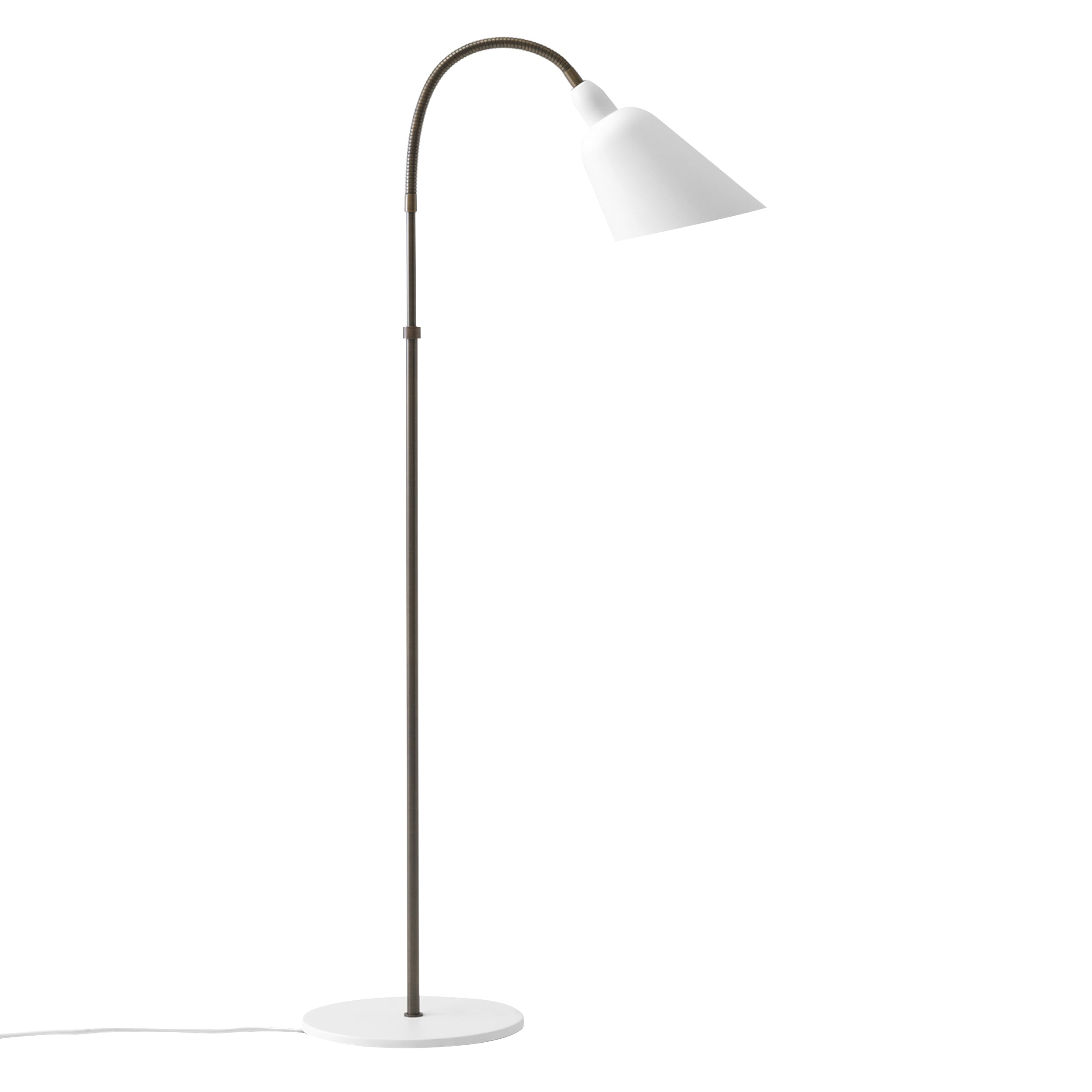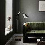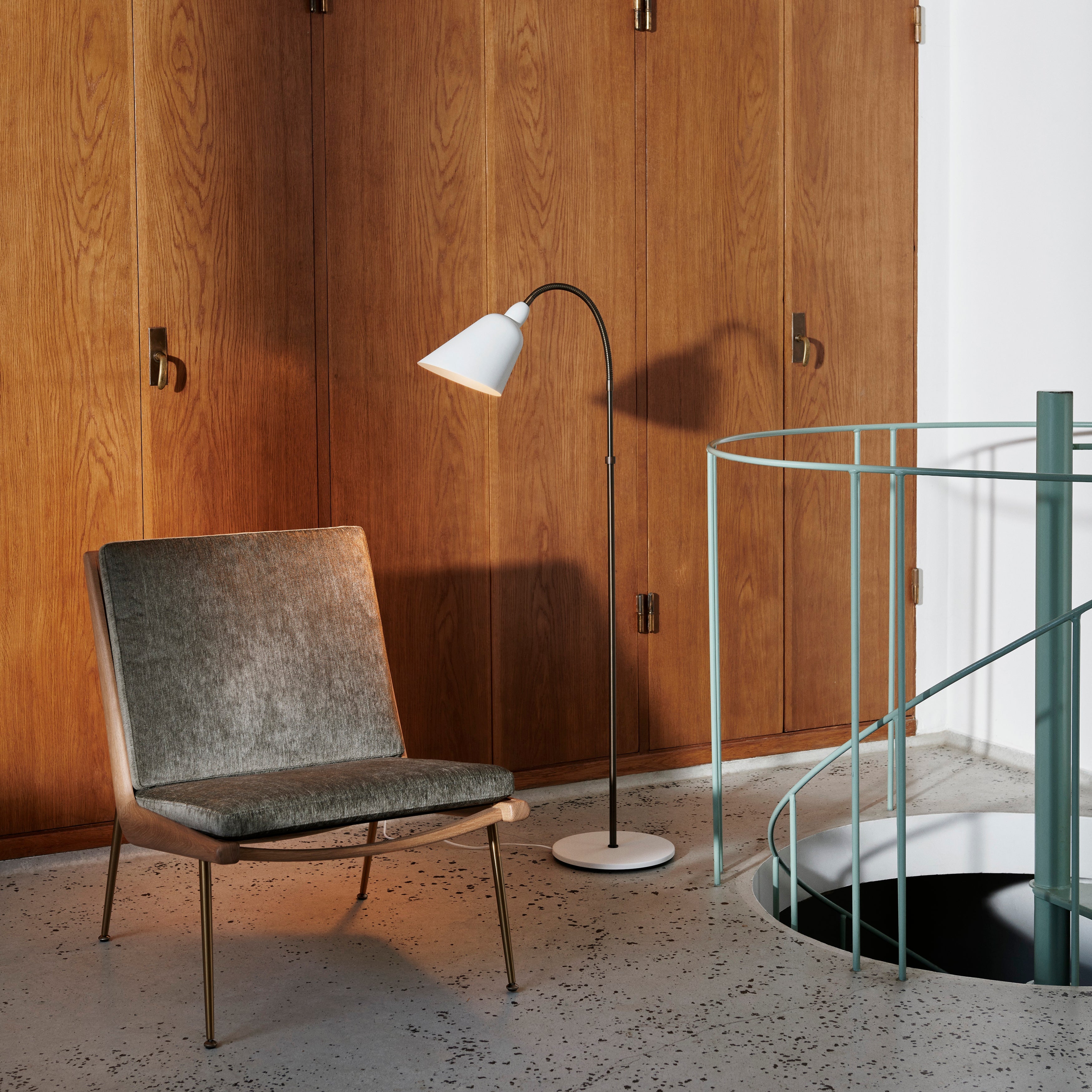 The singular sensation that started it all- and continues to shed a light on modern design nearly a century later. Design legend Arne Jacobsen initially conceived the AJ2 Floor Lamp in 1929, the first model of what became known as the Bellevue Collection. He fashioned the simple goose-neck silhouette and clean construction to echo the then-budding modernist movement's embrace of the industrial. Consider the use of cast iron in the base, the steel tubing and fabric cord. The 45-degree cut of the brass shade, to shield the eye from direct light, would appear again and again in this icon's work. However, we think the true legacy of the Bellevue Collection- be it this floor lamp, or the desk or wall lights -has to be its modest yet powerful testament to functional simplicity. Mr. Jacobsen's design breakthrough lives on in the 21st Century by way of &Tradition, a modern classic for many futures to come.