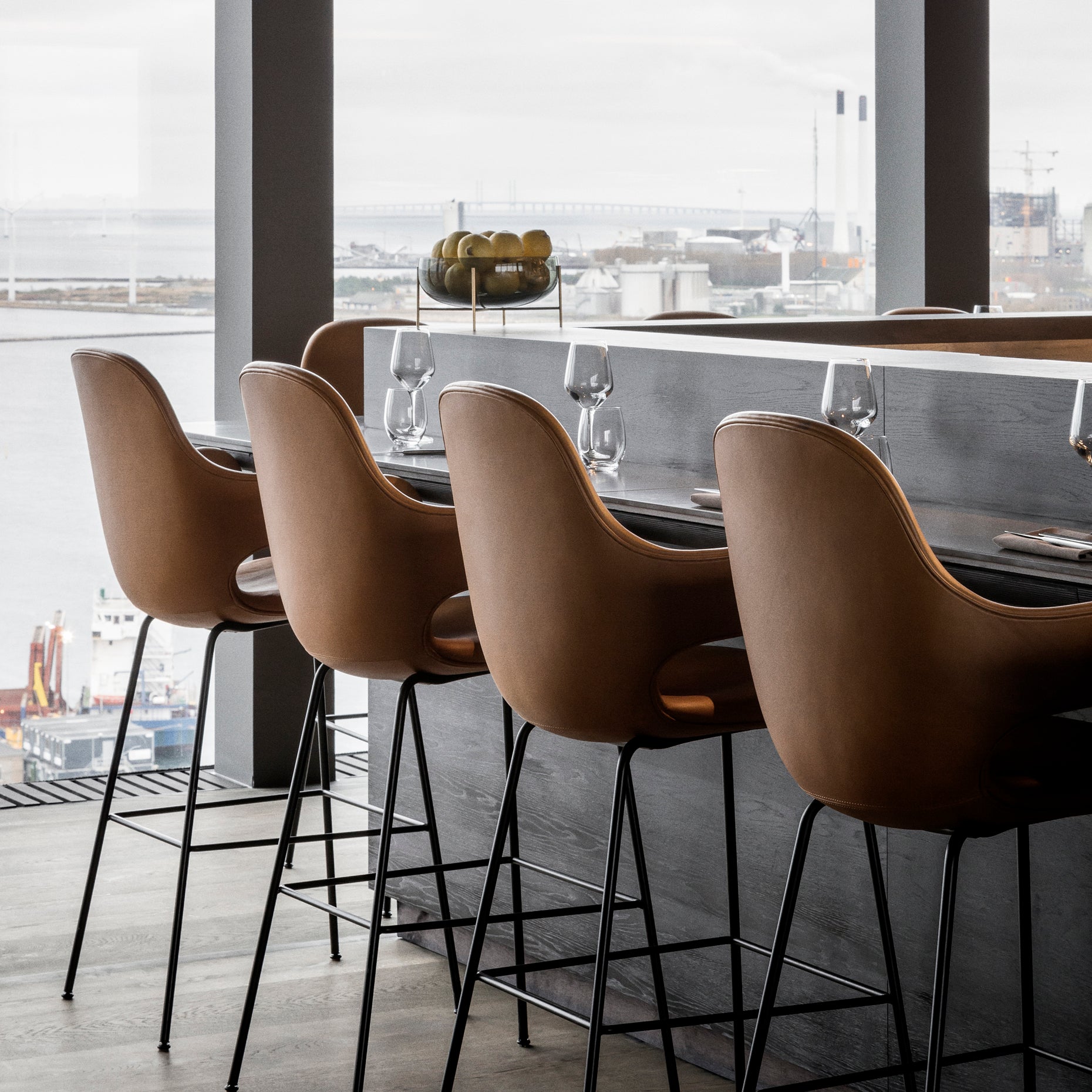 With its whimsical "open-arms" appearance, Catch extends its upholstered seating range to a versatile stool in either bar or counter height. But designer Jaime Hayon's signature chair for &Tradition is much more than just a wink—its serpentine shape in molded polyurethane foam provides all-embracing comfort. Set on tubular steel legs with a black powder-coat finish, Catch has an easy, light presence and comes in a nearly unlimited array of standout fabric and leather upholstery choices.