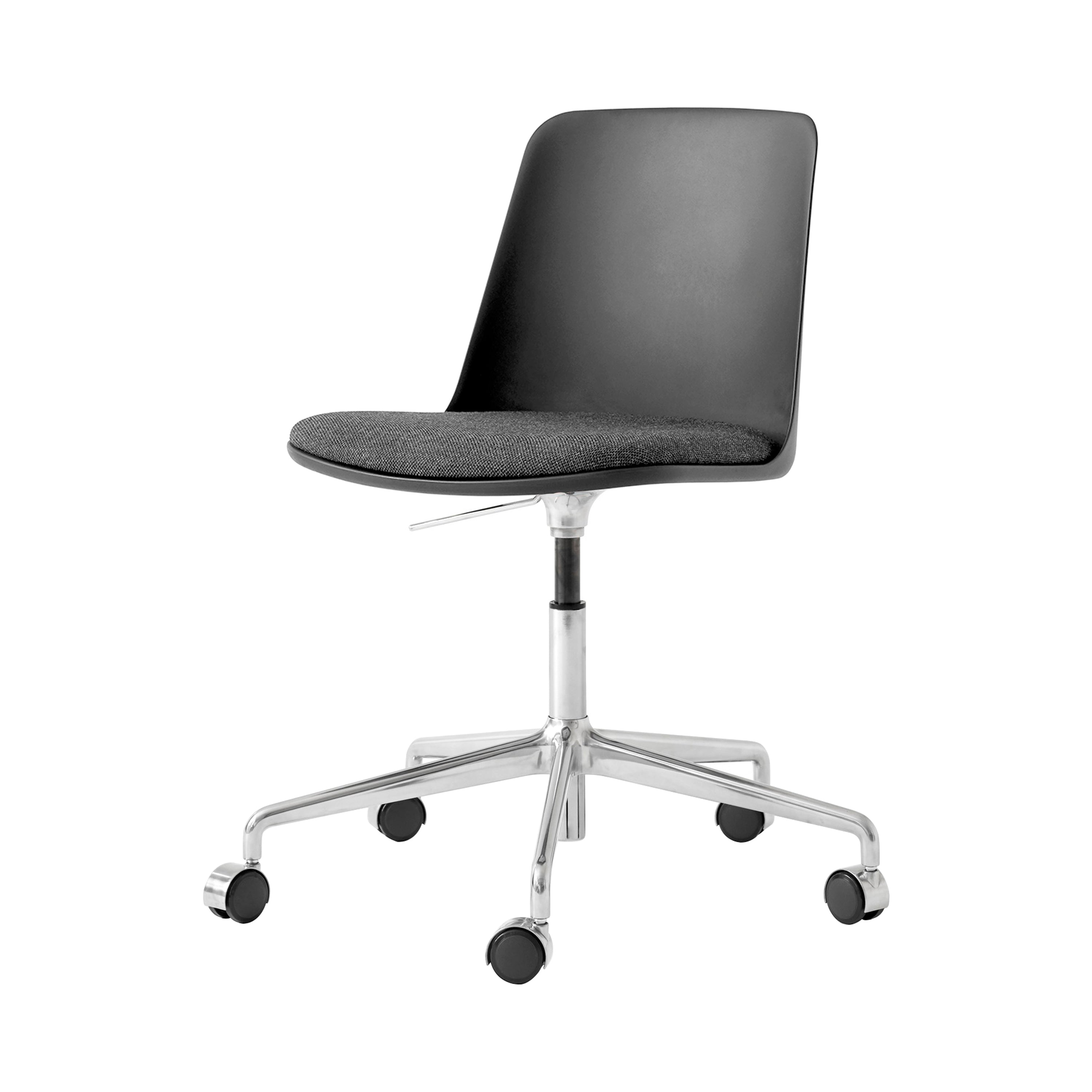 An upholstered seat cushion and a swivel base with castors elevate this version of Rely, made from 100% recycled plastic. Danish designer Hee Welling’s eco-friendly version of the iconic Scandinavian shell chair hews to the classic molded silhouette with its characteristic ergonomic ease. This version features automatic gaslift height adjustment and a sturdy 5-star aluminum swivel base with matching castors. Both leather and fabric choices for the seat complement a range of chair hues.
