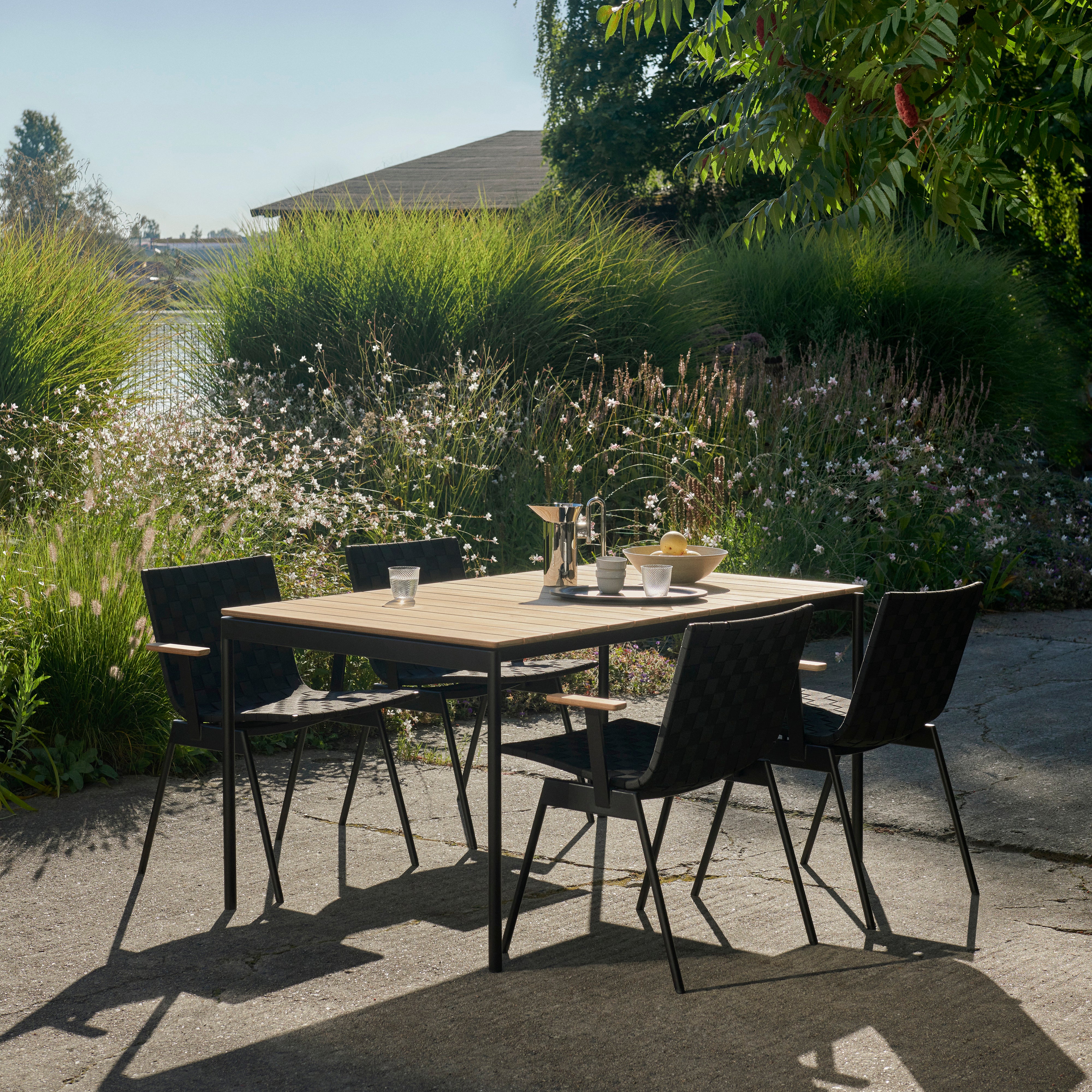 Chosen for its comfort and ability to adapt to body temperature, Ville armchair’s back and seat are crafted from polyester webbing, woven by hand and trimmed with a hot knife to avoid fraying. With a powder-coated steel frame, the comfortably curved seating stacks in multiples of up to 8 pieces when not in use.
