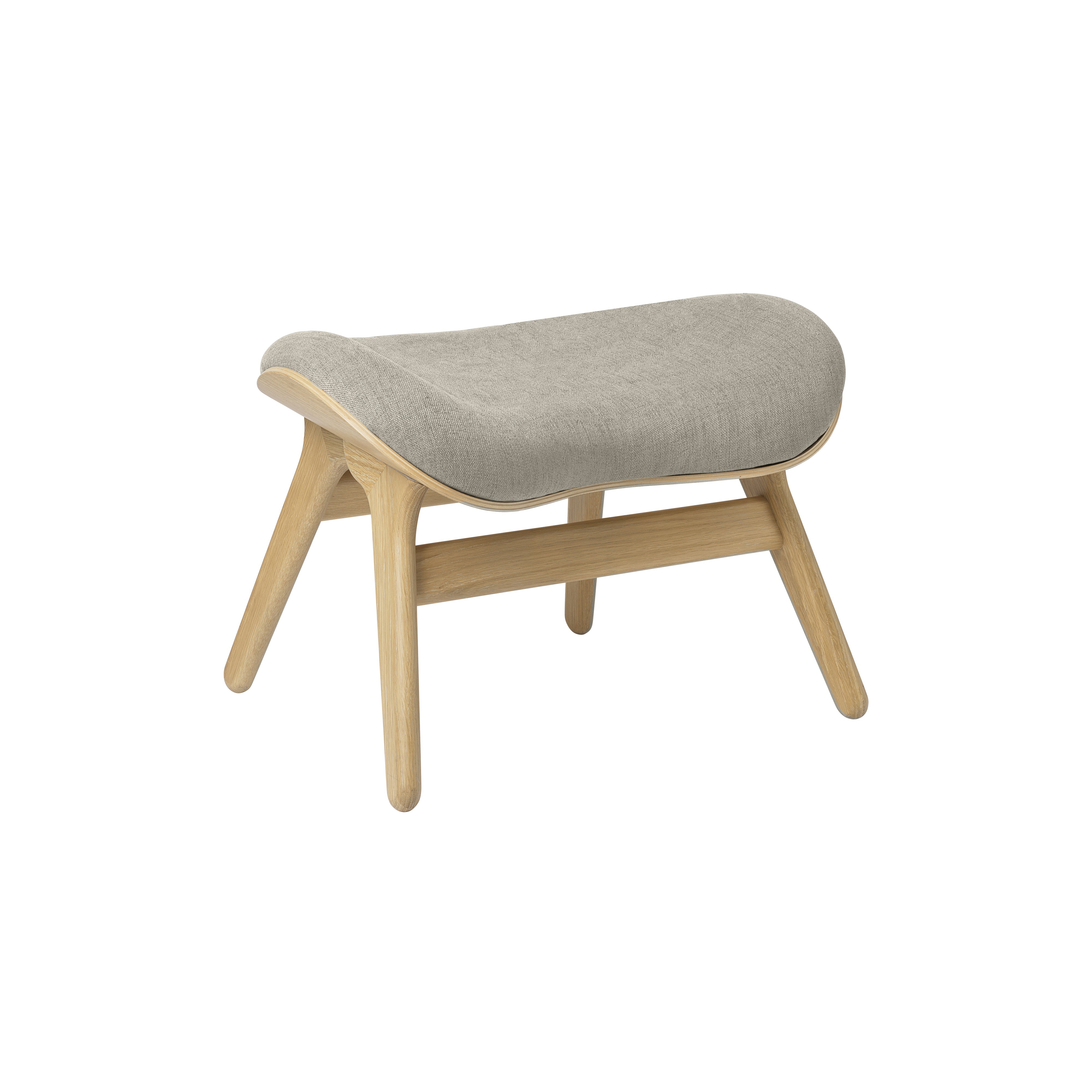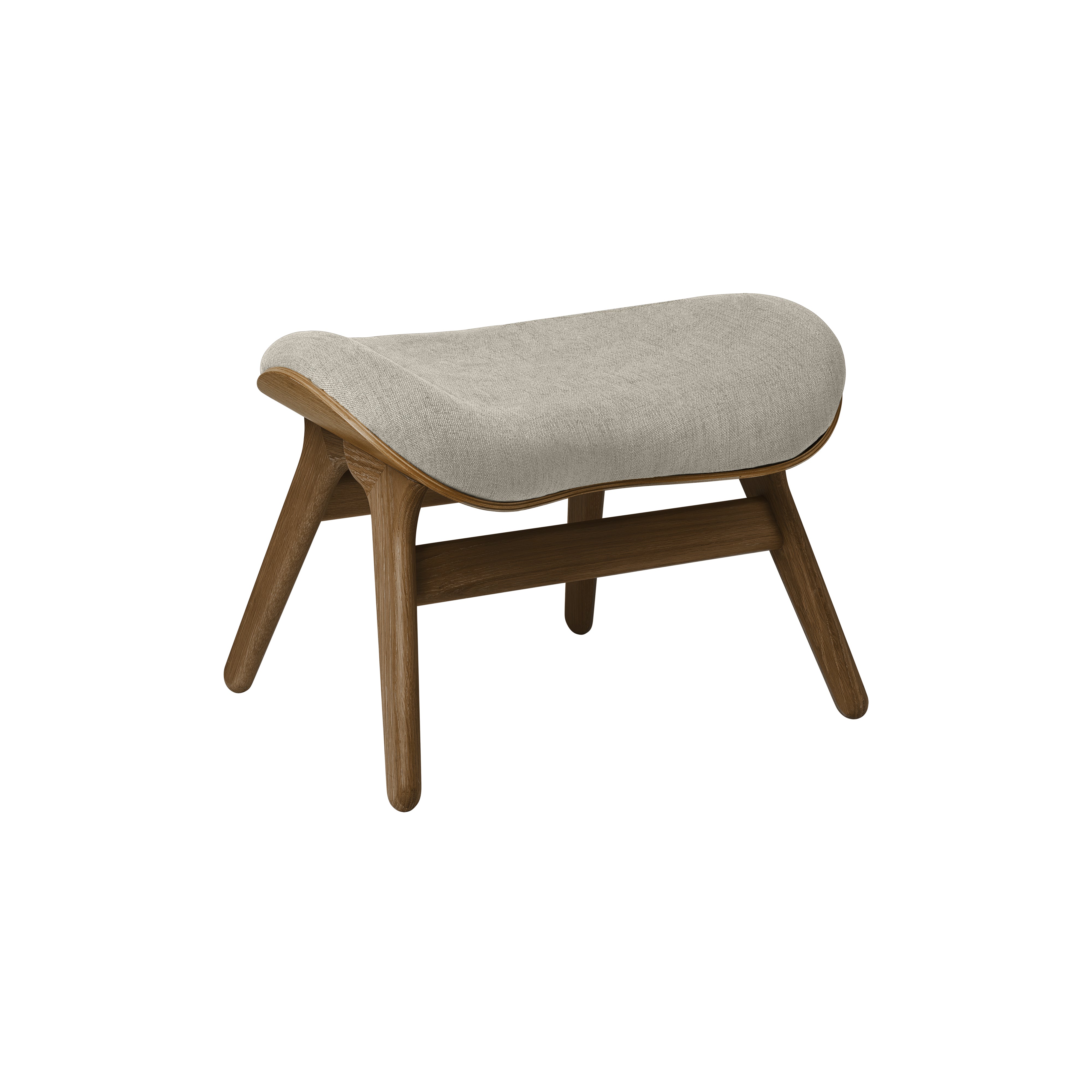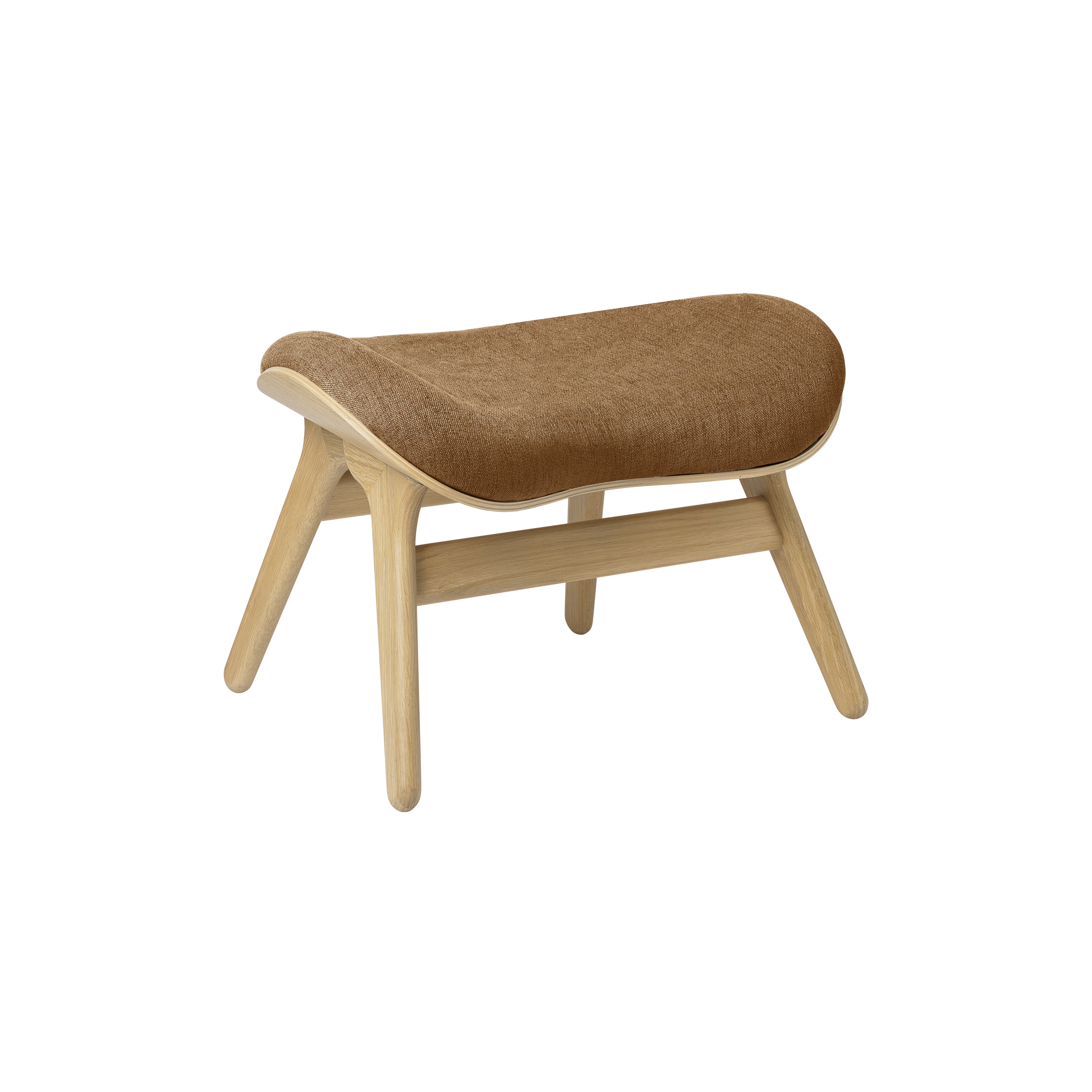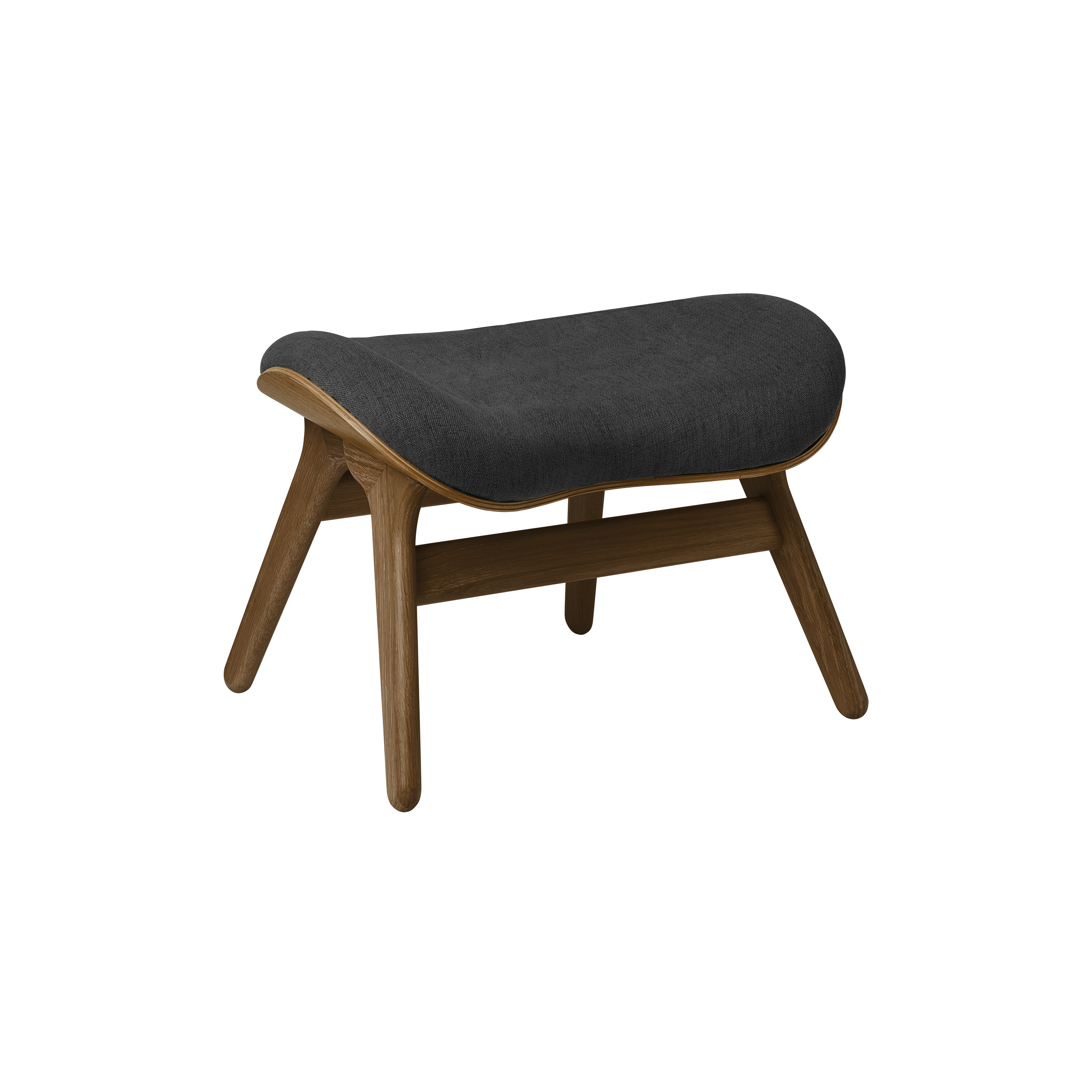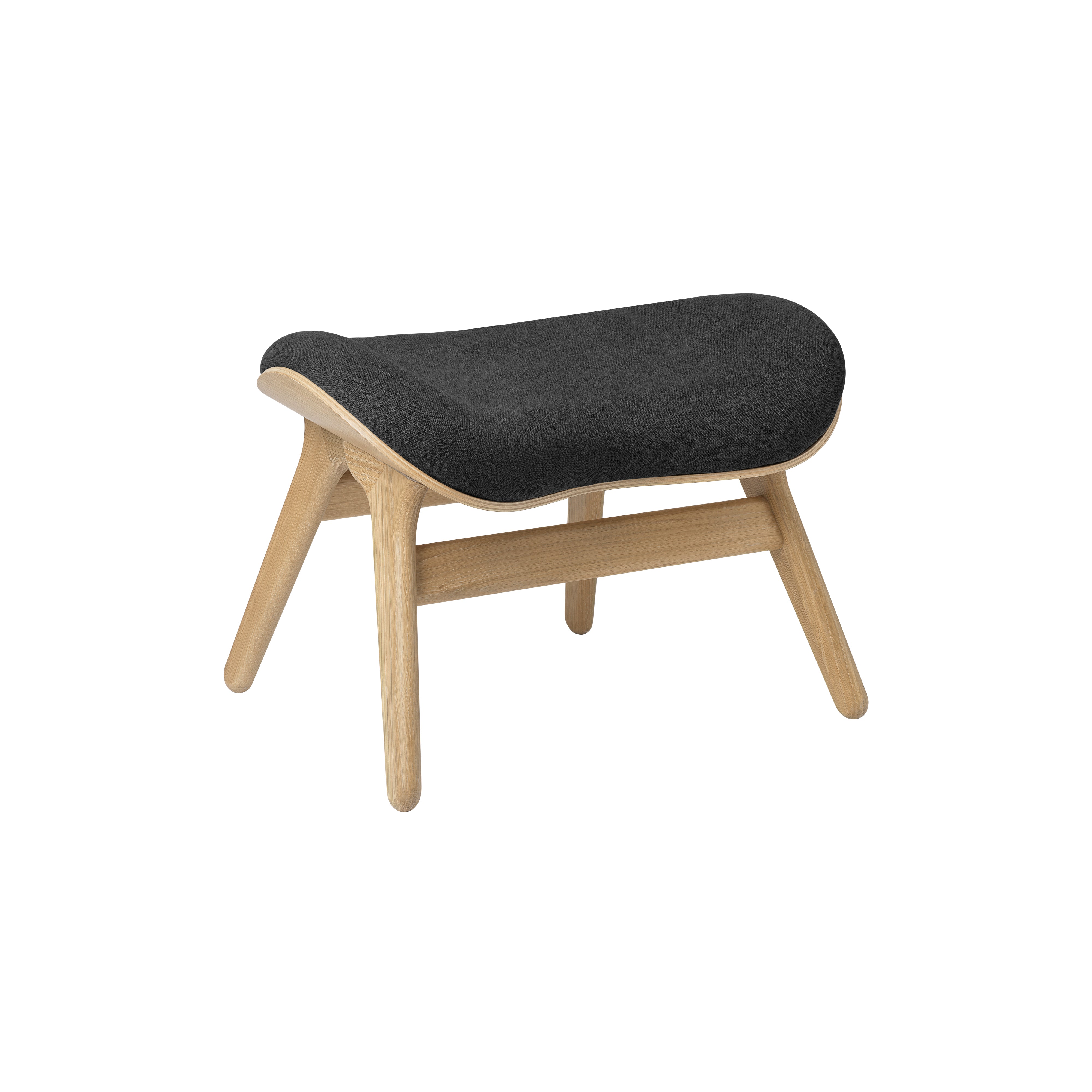 Anders Klem's organically contoured ottoman extends the expressly comfortable premise of his similarly curved companion armchair. A Conversation Piece's elements readily adapt to the footrest shape with the same wood shell construction and the collection's unusually extensive range of colorful upholstery options. Emphasizing the surface grain, the oak base comes in a choice of natural, dark and blackened finishes.