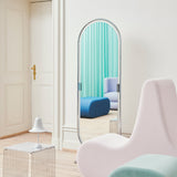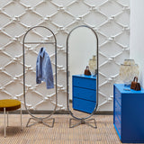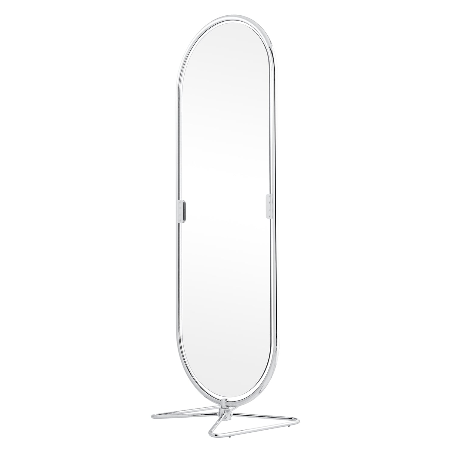Design giant Verner Panton's System 1-2-3 Mirror takes its oval shape from his iconic seating series of the same name (which originally reflected the 3 versions of the chair). With its form traced by a chrome-plated frame, the double-sided floor mirror features a tilt function and pivots easily on its butterfly swivel base. An elegant accoutrement for the dressing area, bathroom or bedroom, the circa-1973 effort from the prolific Panton is also a rightful piece of design history.