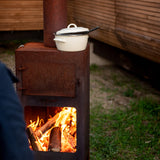 Outdooroven's name hardly begins to describe Dutch product designer Vanhoffontwerpen's multifunctional cooker for patio or garden. This wood-fired unit combines barbecue grill, pizza oven, cooktop and warming fireplace all in one. Made from naturally weatherproof Corten steel, meant to remain outdoors year-round as rust coating protects it from further corrosion. Ready to use right away and pizza stone and wire grill included.