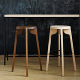 Zanat’s memorably individualistic Tattoo seating designed by Wingårdhs adds a stackable barstool version with a choice of hand-incised patterns. Offered in bar and counter heights, the finely crafted joinery of the stool's legs intersects the seat surface with an inset cross-like detail. Carved patterns include allover Peasant and Peacock motifs or the linear Perla, all executed in solid wood from sustainably sourced varieties in a range of finishes, with an integrated black steel ring footrest.