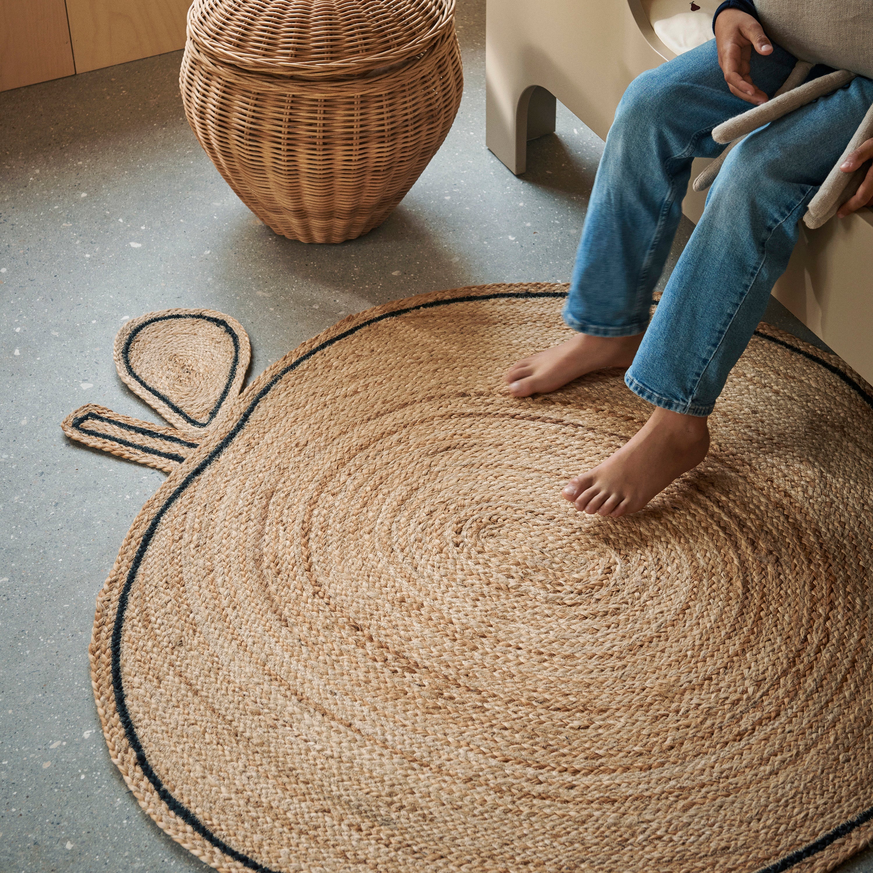The Apple Braided Jute Rug brings a playful touch to any room with its charming apple shape. Hand-braided from natural jute, a durable and biodegradable material, it offers both sustainability and resilience. Ideal for children's spaces or as a whimsical accent in other areas of the home.