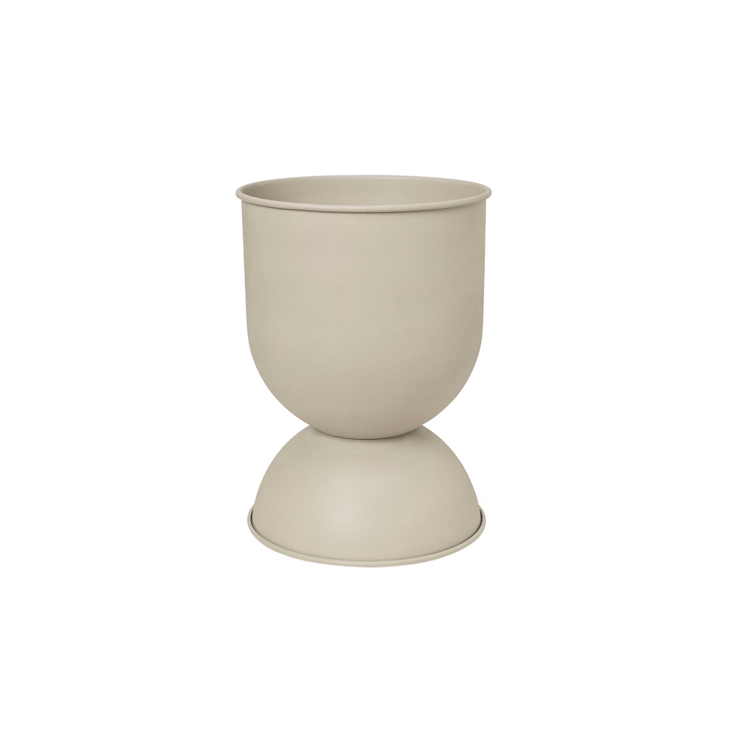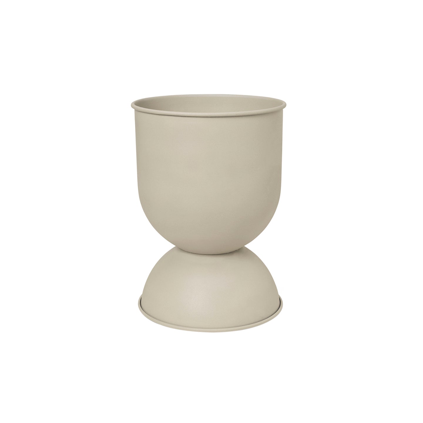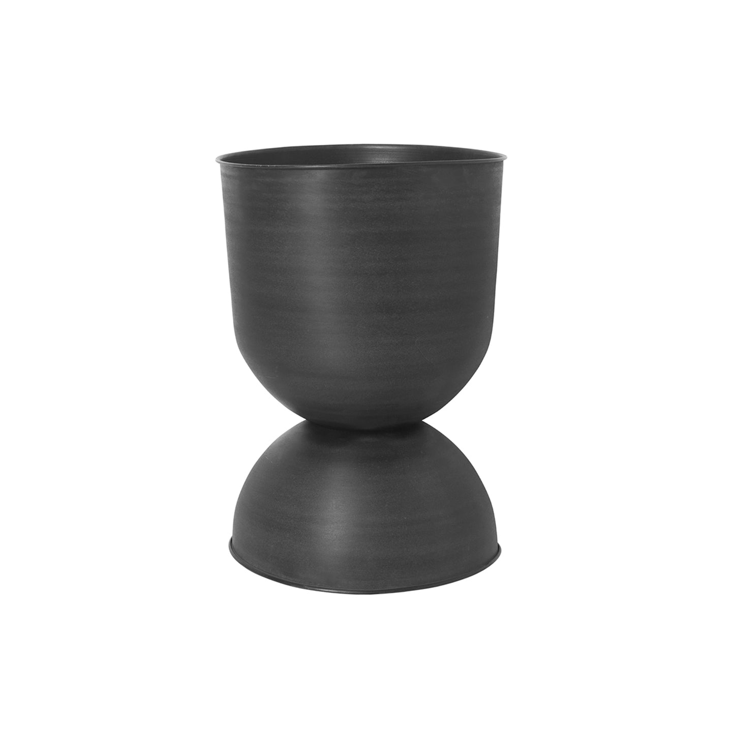 Indoors or outside, Ferm Living's goblet-shaped planter provides plants with an elevated stand and a roomy container in which to spread their roots. Hourglass is crafted from smooth sheet metal with a matte finish and has an antirust treatment to stand up to the elements. The planter can be used in either direction for a smaller or larger pot and is equipped with a drainage hole with rubber cap that works both ways. Outdoors, it will acquire a lovely patina over time.