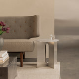 This steel version of the Androgyne Side Table is a sculptural piece blending contrasting design elements. Its powder-coated steel base, with wide, flat legs crafted for precision, supports a round tabletop that slightly overhangs, creating a sense of balance. Designed by Norwegian architect Danielle Siggerud, the table comes in black, ivory, and brushed steel finishes. It works well as a side table in living rooms, bedrooms, or lounge areas.