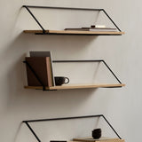 Japanese designer Keiji Ashizawa takes a cue from the world of architecture in a wall unit that features a squared-off steel mounting bracket inspired by metal handrails. In a tactile contrast, Rail offers a choice of natural or dark-stained finishes for the oak shelf, making a distinctive but minimalist backdrop for favorite objects and boasting built-in bookends.