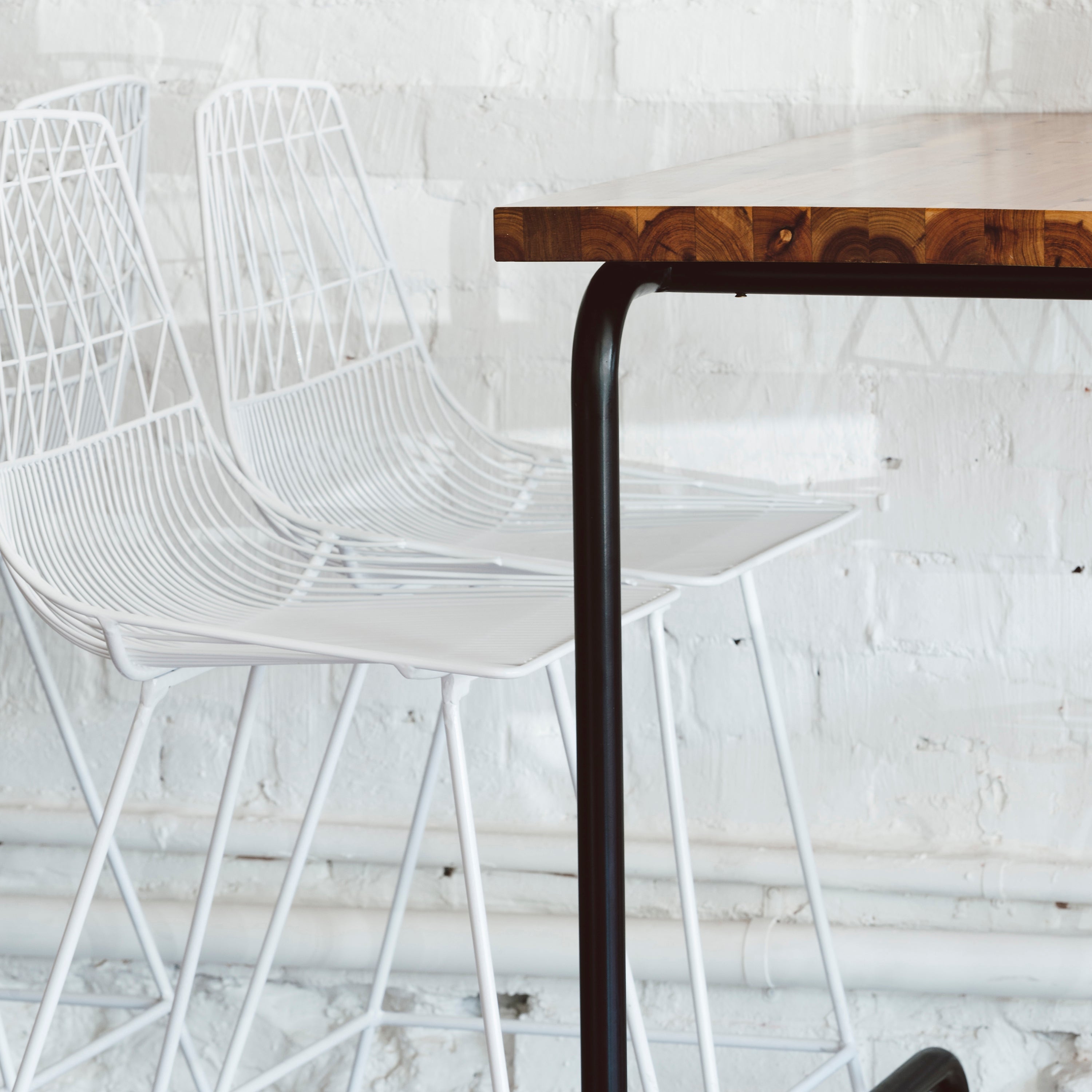 Michigan native Gaurav, formerly a designer for General Motors, values performance just as much as polish. The structural strength of each piece of furniture is contract grade, while the ergonomics and the spacing of the wires assure comfort and utility. Environmental impact is also a concern, and he envisions each piece as something built to last a lifetime, fabricated from the plentiful resource iron and sustainable woods. Though Gaurav's work draws on the legacy of modernist objects in wire, he wants "to offer something different, something edgier."