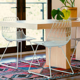 Do you love Lucy? If you're more of an Ethel, designer Gaurav Nanda has a version for you, too (as do we here on this site!). These dining chairs are part of the Bend collection by the Los Angeles-based Gaurav, who's managed to make wire chairs that are actually comfortable to sit in for a long while. Each piece is machine-molded and undergoes upwards of 400 handmade spot-welds—a process Gaurav refers to as "bending." Each bend is carefully arranged to ensure structural strength. The angles of the back, the curves of the seat and the closeness of the wires are placed a quarter inch apart for comfort and utility. Gaurav grew up in the Detroit suburbs and even spent part of his design career at General Motors. For this collection, he draws pattern inspiration from his childhood: the intricate macramé his mother made; string art Spirograph drawing sets. (He was also a part of the design and conception of Clocky with his sister Gauri.) What's more, the collection is made of an iron that can be repeatedly recycled, and all pieces are sandblasted, then pre-treated with anti-rust zinc primer and powder coated for extended life right in Gaurav's L.A. studio.