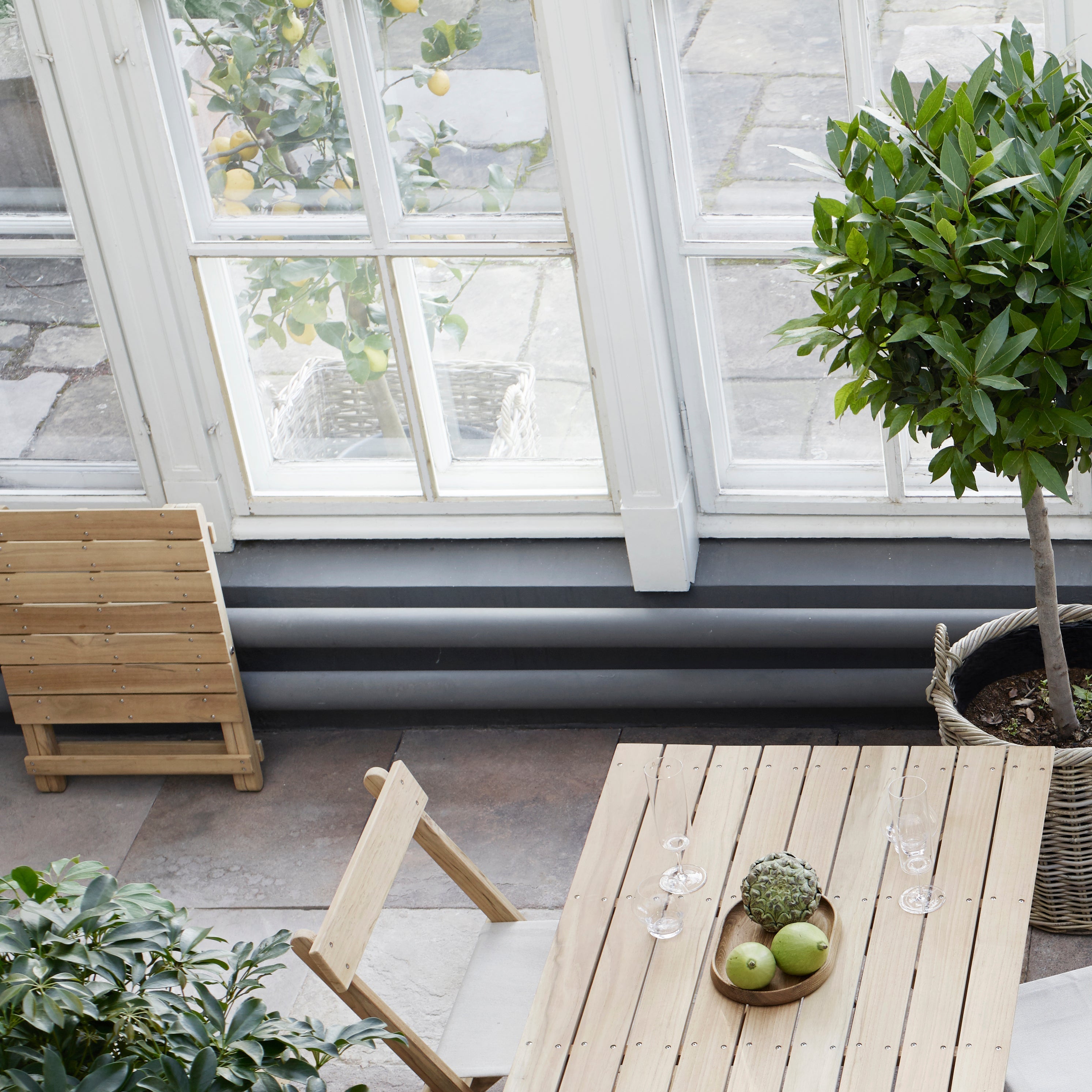 Versatile enough for myriad outdoor settings, Danish designer Børge Mogensen originally conceived this circa-1960s slatted table for his own balcony. Carefully crafted in FSC-certified teak, the BM series’ companion piece has a sturdy, yet lightweight frame that makes it easy to move around and folds to fit a minimum of storage space. With classic Nordic simplicity, the untreated wood table weathers to a fine patina, offering years of spontaneous utility for the good times alfresco.