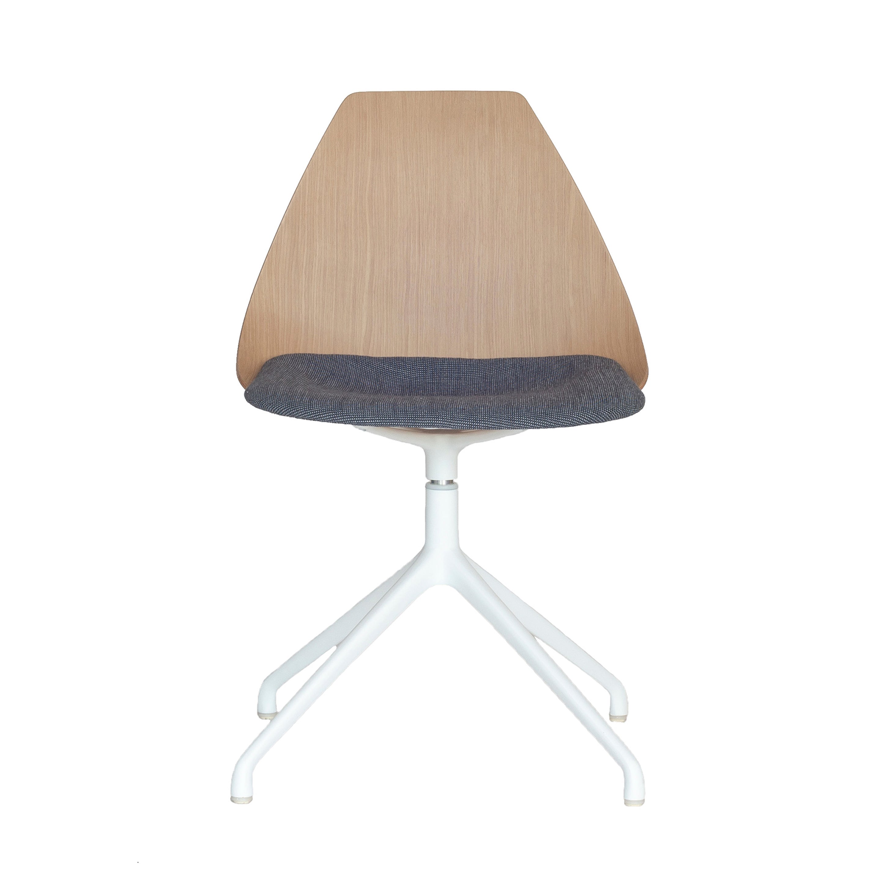 Ziba, designed by Nazanin Kamali, offers pleasing proportions and reliably comfortable contours in a multi-use chair that’s at home in both residential and commercial environs. With a veneered plywood shell accompanied by an upholstered seat pad, the chair swivels 360 degrees for ultimate maneuverability via its powder-coated aluminium base.