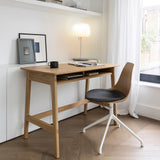 Ziba, designed by Nazanin Kamali, offers pleasing proportions and reliably comfortable contours in a multi-use chair that’s at home in both residential and commercial environs. With a veneered plywood shell accompanied by an upholstered seat pad, the chair swivels 360 degrees for ultimate maneuverability via its powder-coated aluminium base.