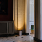 Lending an almost theatrical glow to any living space, DCW Éditions' floor lamp adds intrigue with its warm upward illumination. In a choice of ever-chic black or white enameled steel with a brass interior for a golden cast of reflections, Tobo makes for effortless convenience, modulated with its built-in dimmer. Beautifully crafted by the Paris-based legacy brand, it joins a storied lineup of timeless lighting solutions.