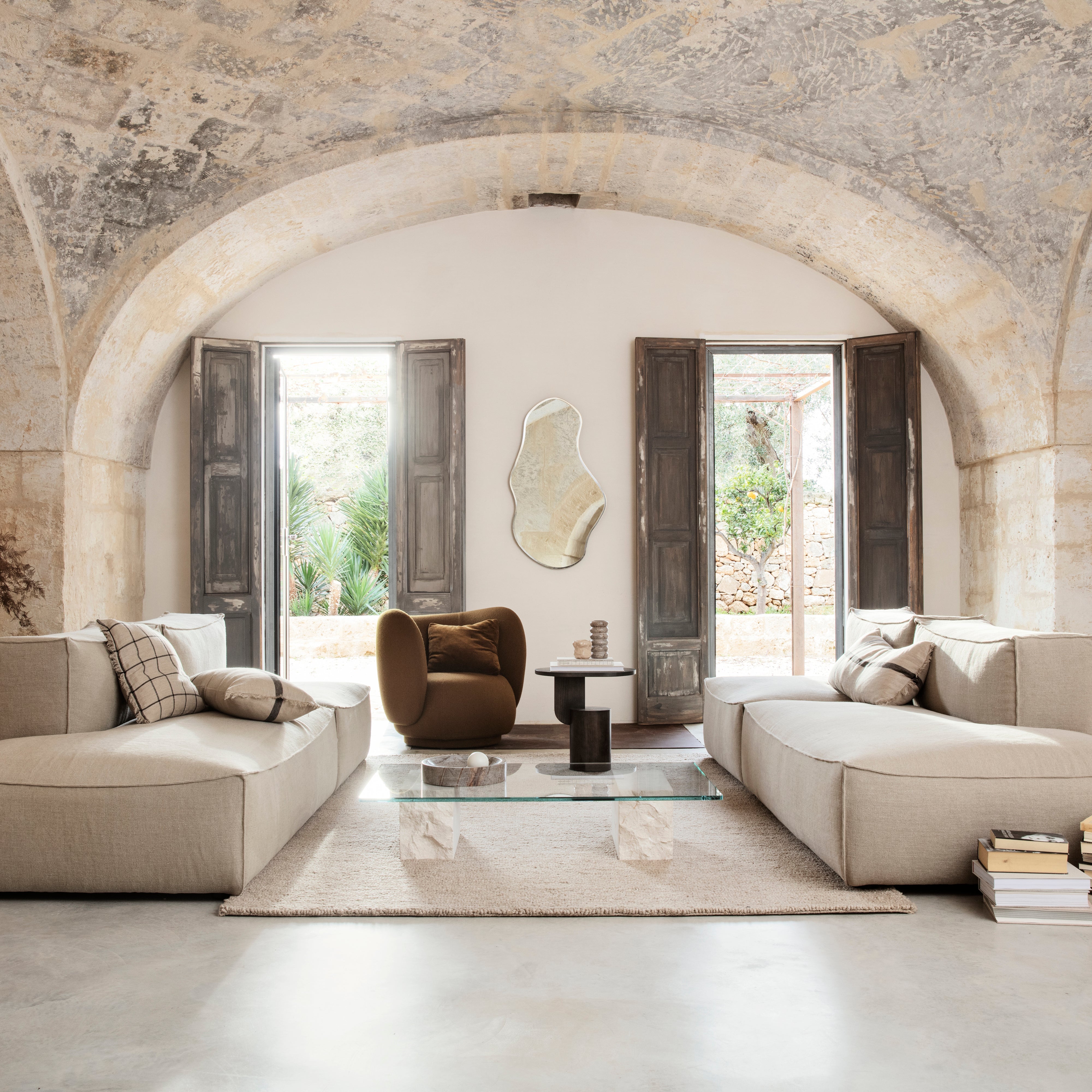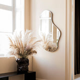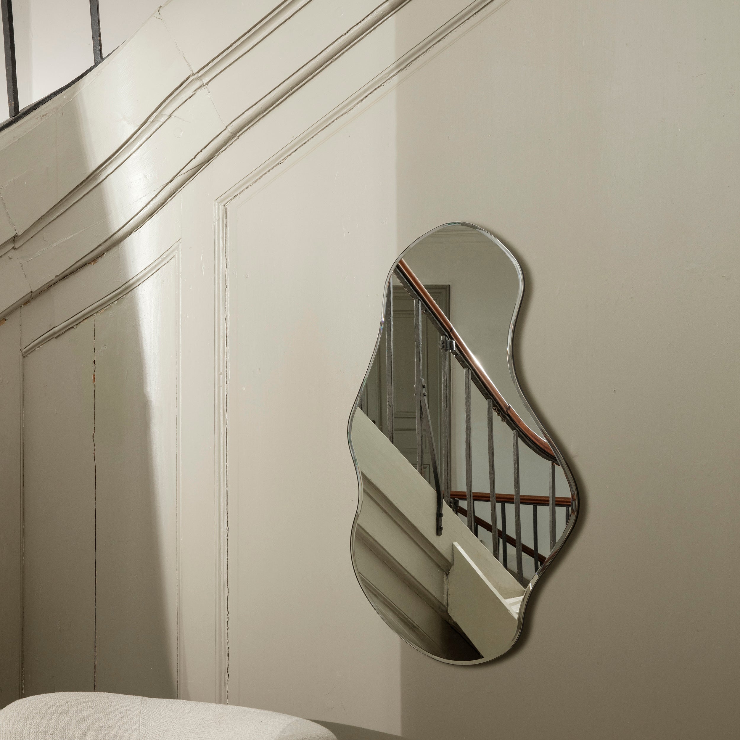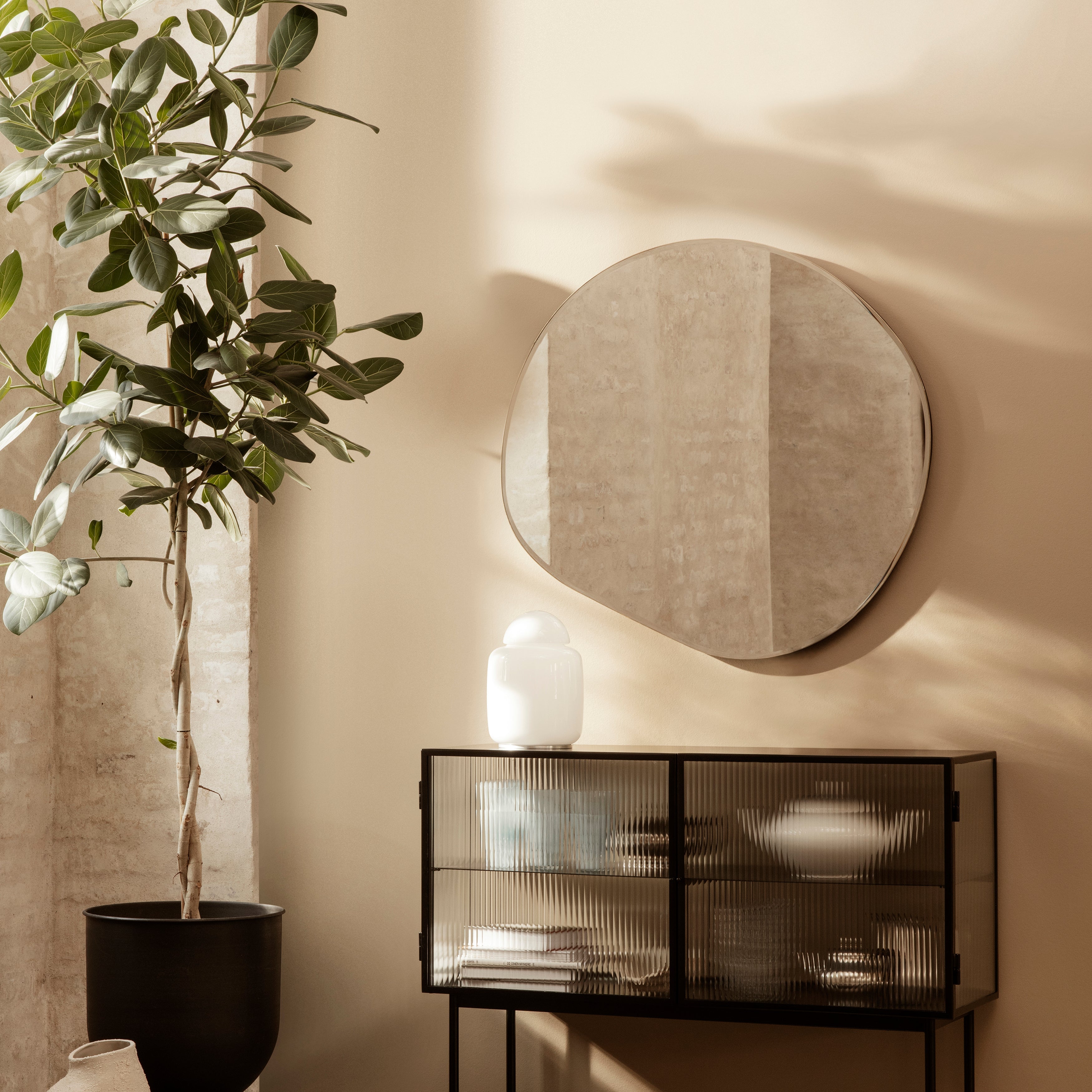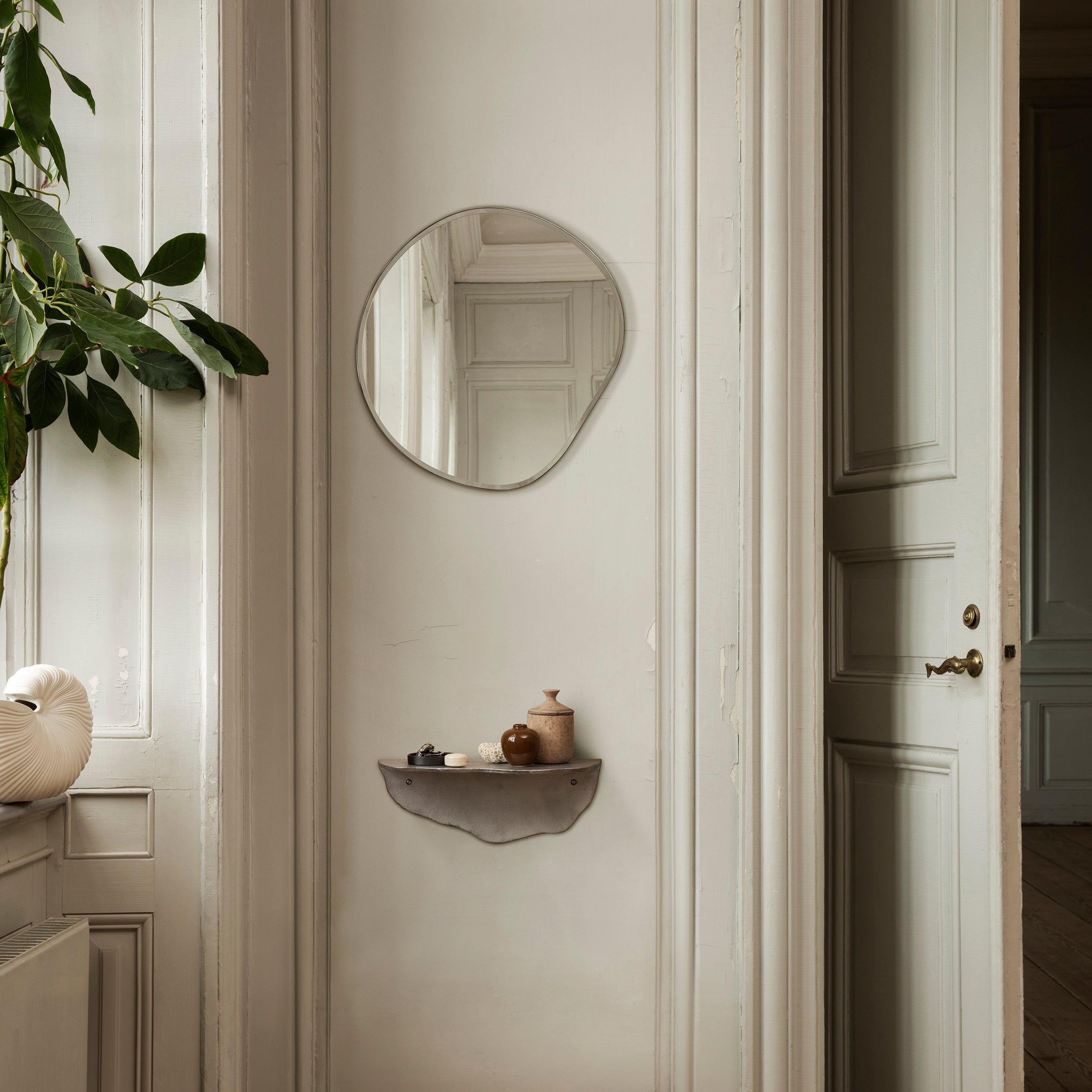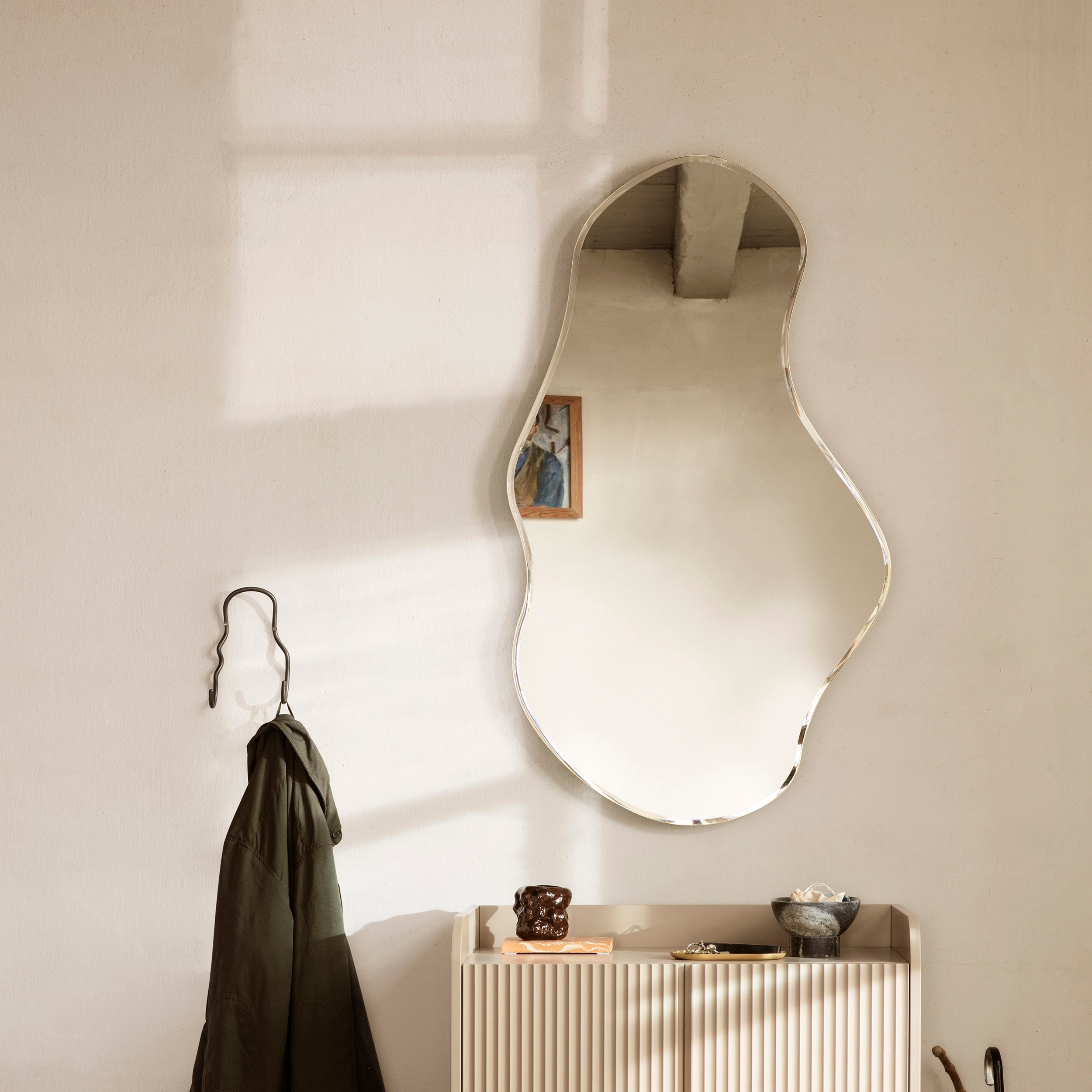 With organic, fluid shapes, the Pond series recasts the functional wall mirror as an expressive decorative feature. The curved edges are held by a slim brass frame and the mirror can be hung in any direction to suit the space. Danish brand Ferm Living offers 3 sizes in the collection, each with its own distinctive free-form shape