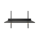 Copenhagen-based Ferm Living revives the midcentury wall-hung desk with a new verve. Sector is defined by its sturdy simplicity and classic functionality but adds the frisson of brass trim to the wooden surface. Use the desk by itself or combine it with Sector collection shelves to configure a cohesive workspace. The narrow inside ledge is ideal for propping up hand-written notes or a favorite photograph. Choose between natural oak veneer or black-stained ash veneer with brackets in either polished or blackened brass.
