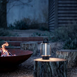 The Qu Table Light is a portable lantern designed for both indoor and outdoor use. It features a 3-step touch dimmer and is available in bright bronze or jet black. Powered by a rechargeable lithium-ion battery, the light provides up to 20 hours of illumination on the lowest dimming level. The lamp is charged via a USB-C cable and offers an IP44 protection rating, offering resistance to dust and water.