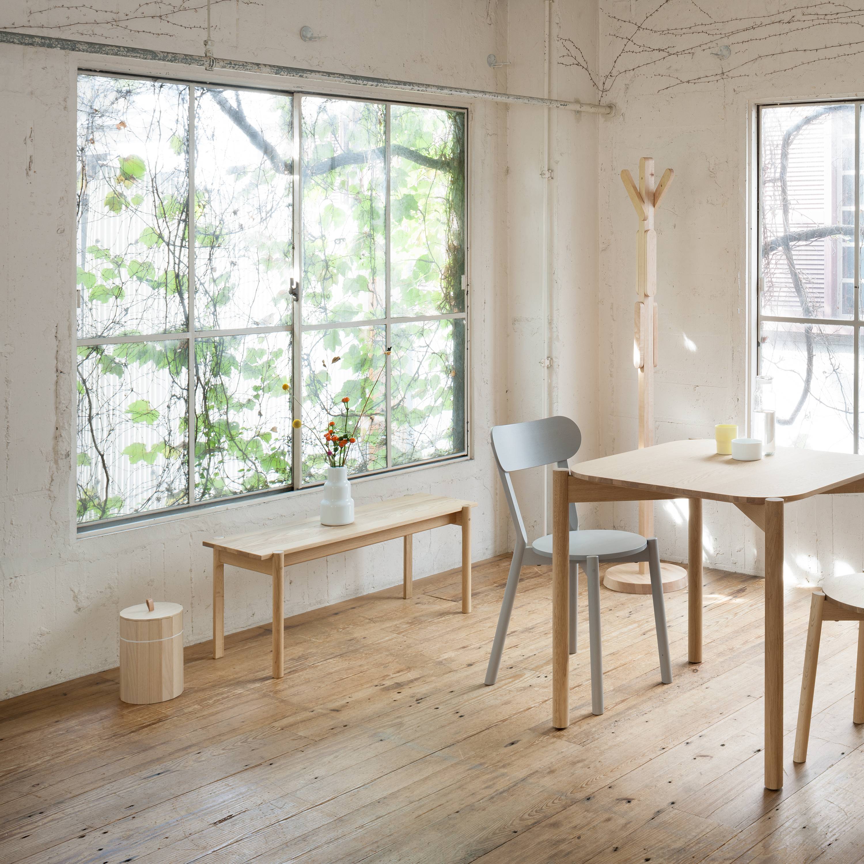 The star roster includes Swedish studio TAF, the Swiss team Big-Game and Dutch duo Scholten & Baijings. Among them is David Glaettli, who also serves as KNS brand creative director and dubbed its credo as “high-tech and high-touch.” The highly skilled Japanese carpentry and hand-applied painting that are a part of the parent company heritage are integral to KNS. It also looks forward, revitalizing native forests by targeting undervalued, sustainably grown hardwoods. Advanced technologies have elevated the low-diameter chestnut, maple and oak trees, once turned into wood chips for paper pulp, into something of lasting beauty. The aim, notes Hiroshi, is “furniture that will be used and loved for more than 100 years.”